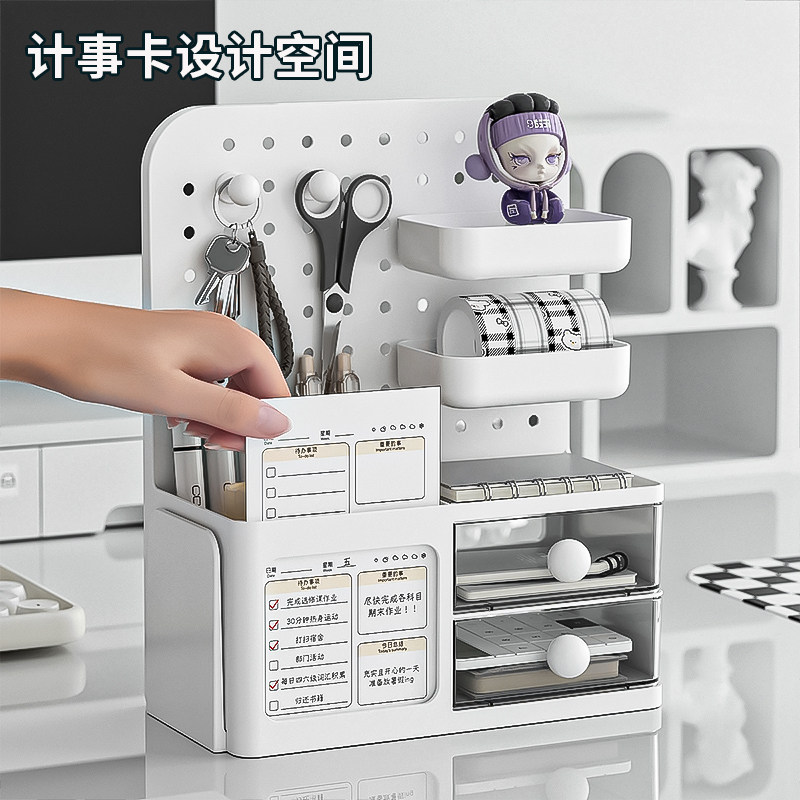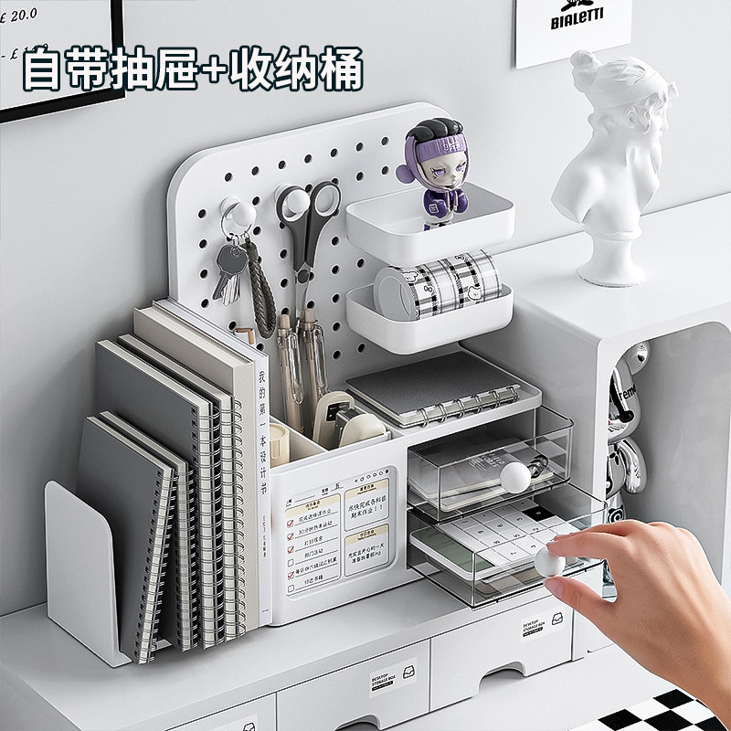 洞洞板桌面收纳盒抽屉式学生书桌整理展示架笔筒工位办公桌置物架