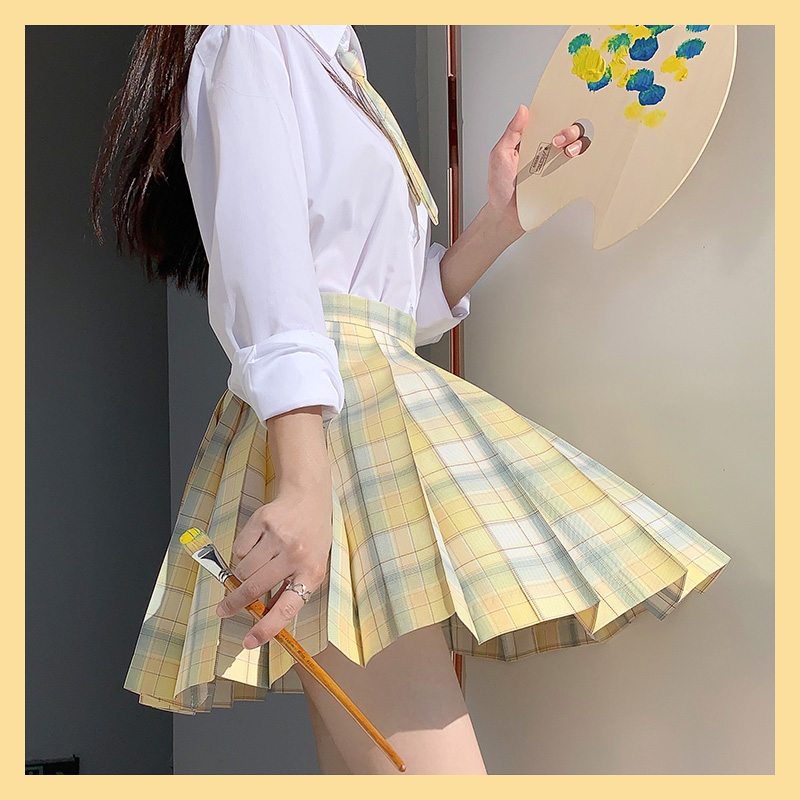 恋染家格子半身裙夏季学生百褶裙高腰a字修身显瘦正版jk制服格裙