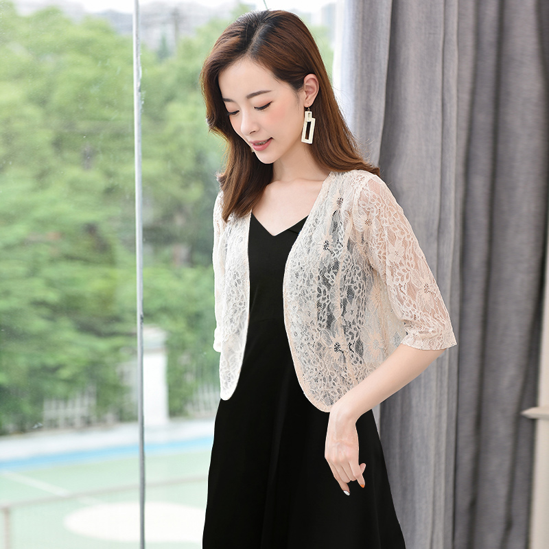 蕾丝小披肩上衣女夏季外搭配裙子新款短百搭大码镂空开衫薄款外套
