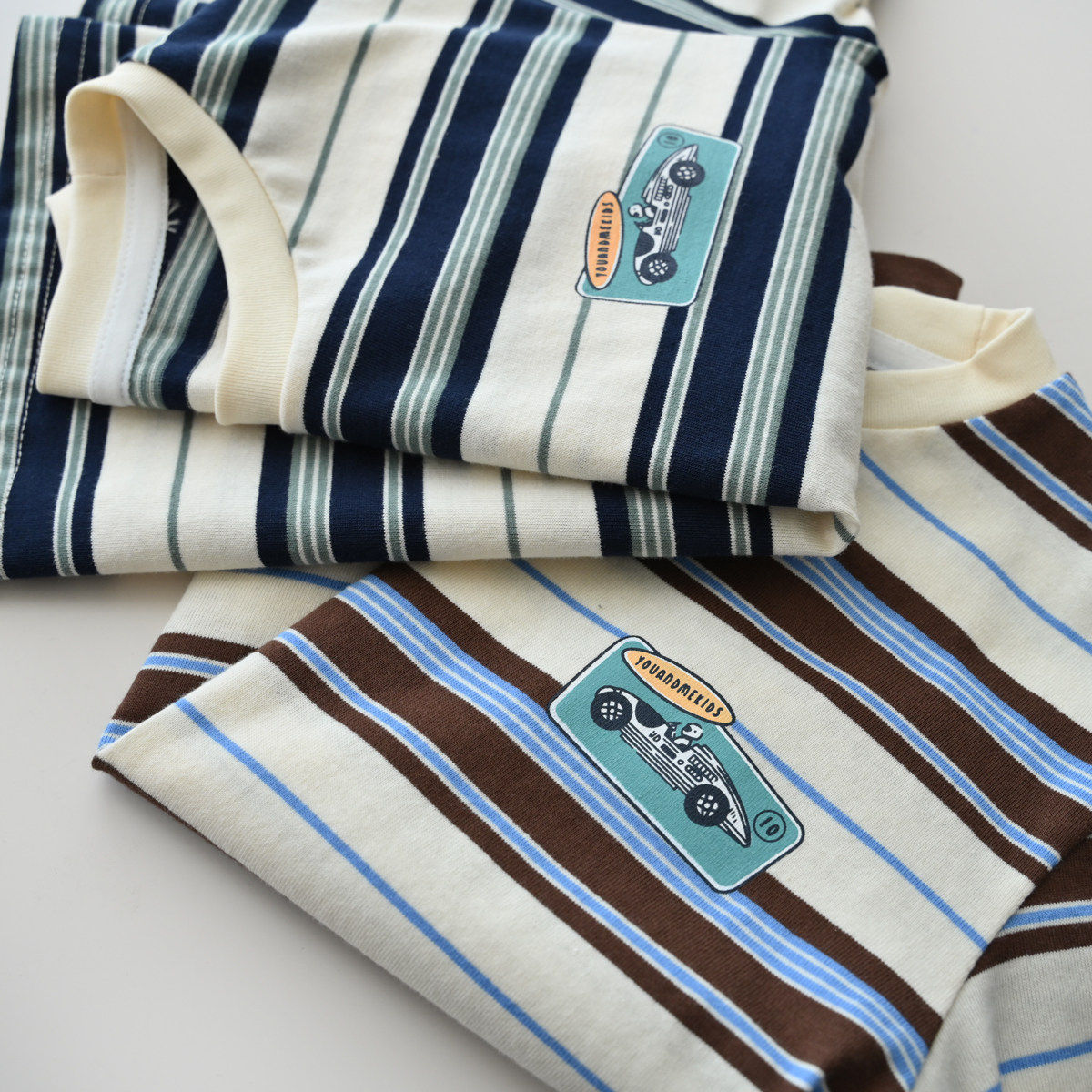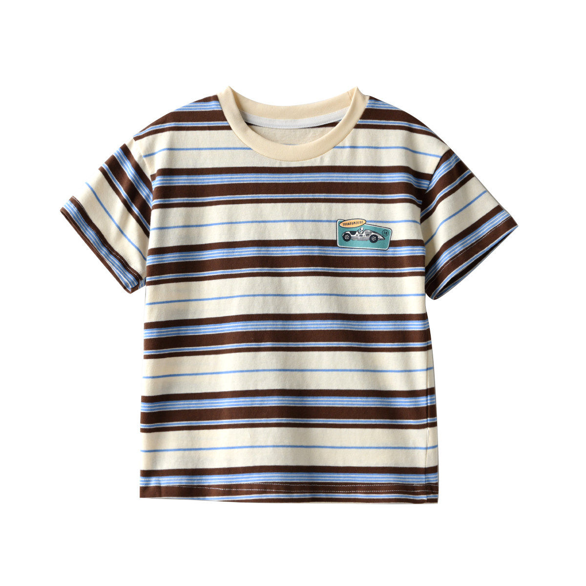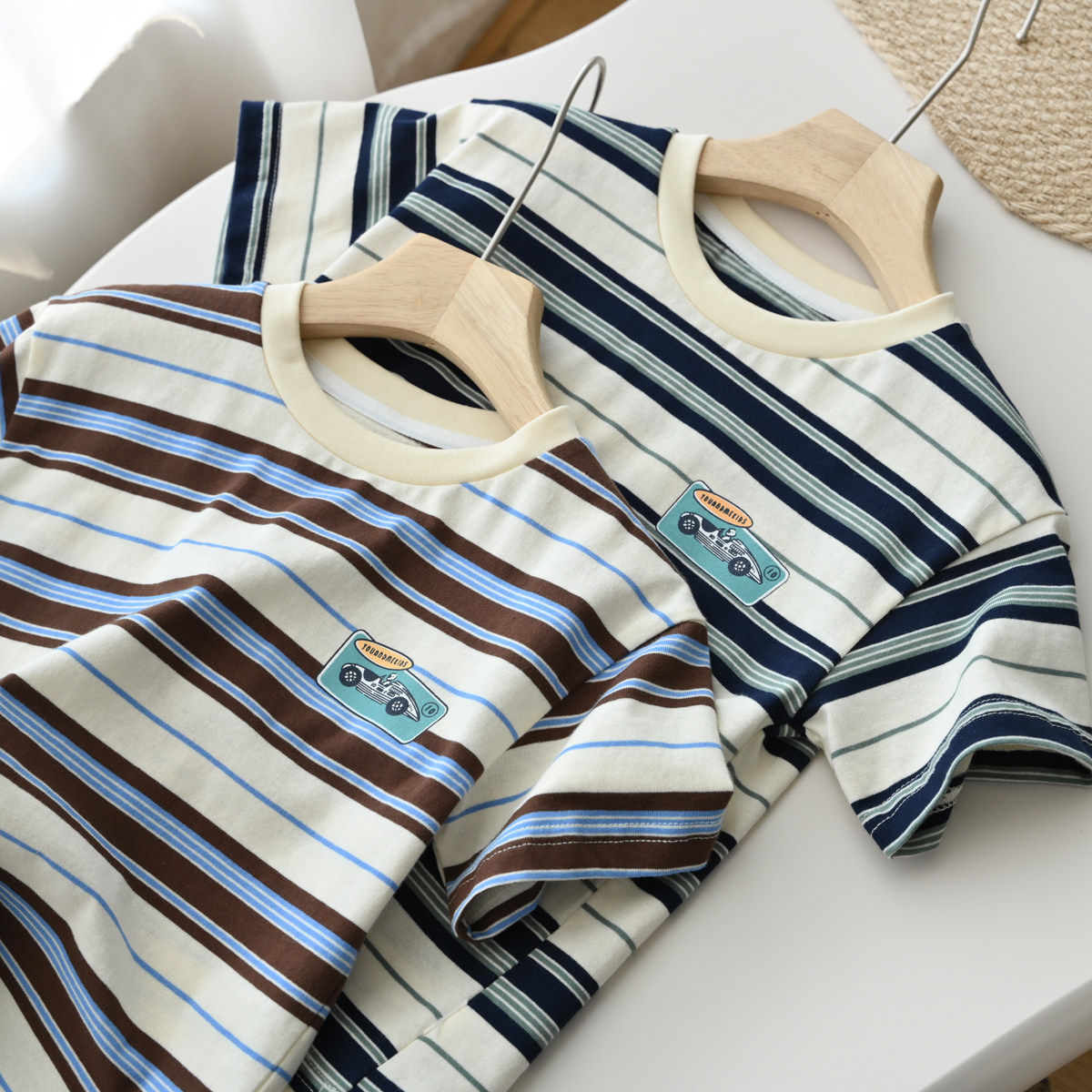 特 儿童纯棉条纹T恤 男童圆领全棉汽车短袖上衣打底衫 中大童