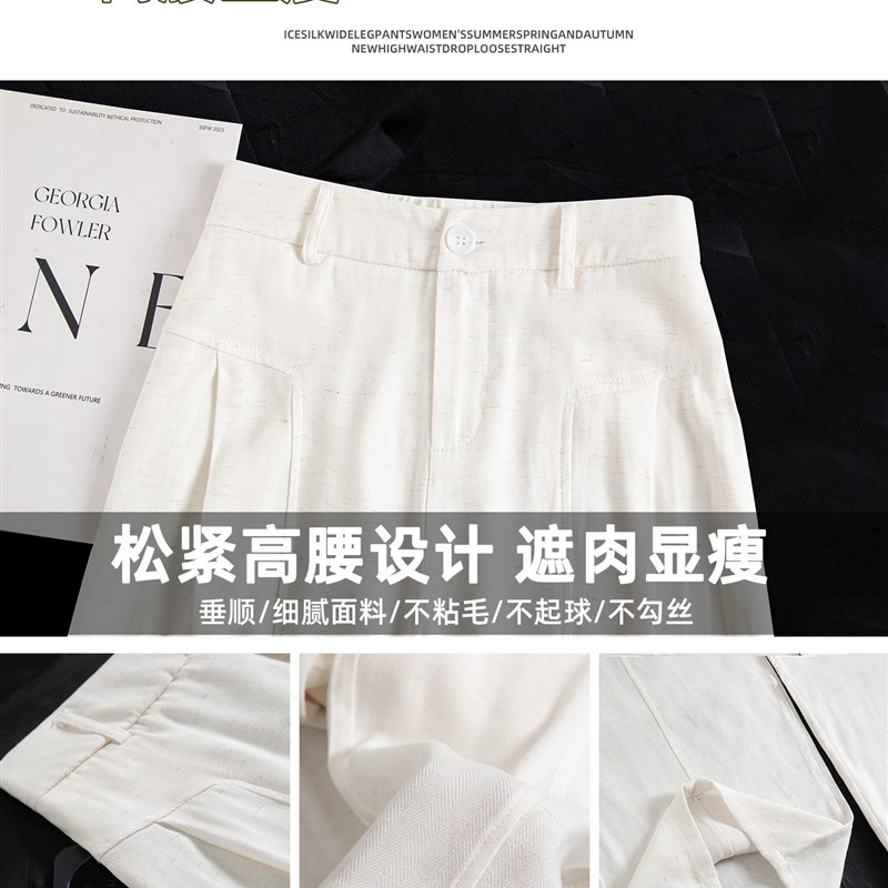 白色棉麻西装裤女夏季薄款高腰显瘦垂感老钱风宽松亚麻阔腿休闲裤