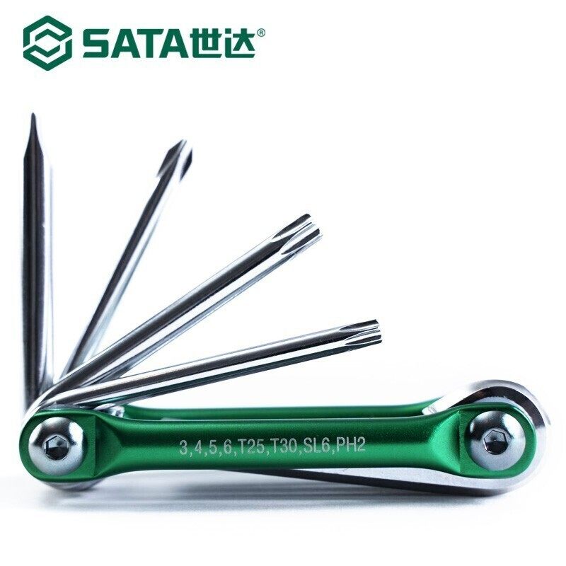 SATA/世达折叠内六角扳手套装金属加力螺丝刀组合公制多规格工具