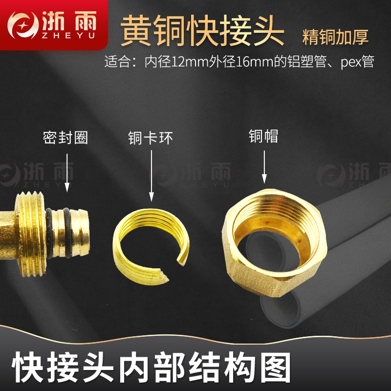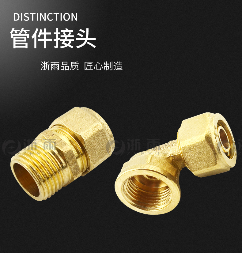 4分铝塑管接头太阳能管热水器管件1216内丝外丝直接三通黄铜配件