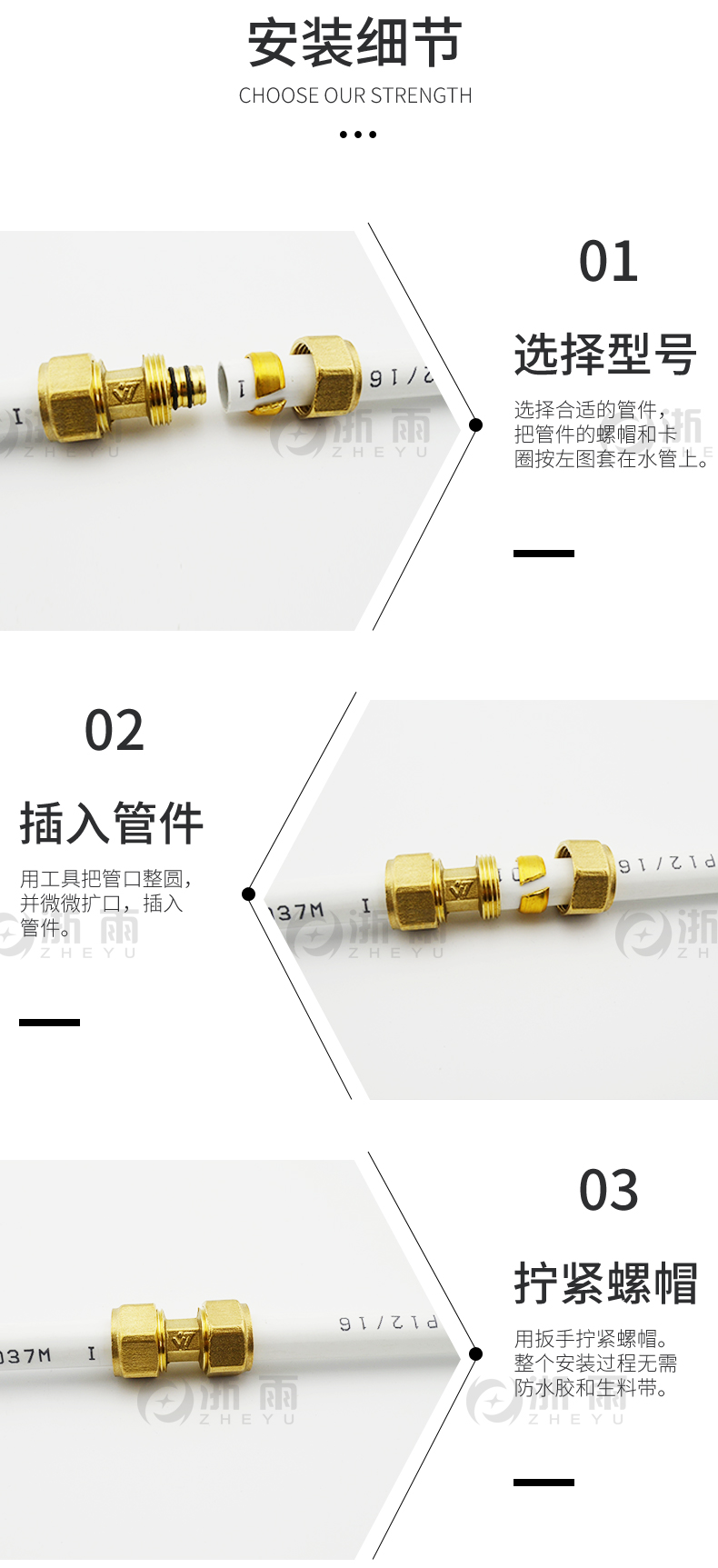 4分铝塑管接头1216直接三通配件