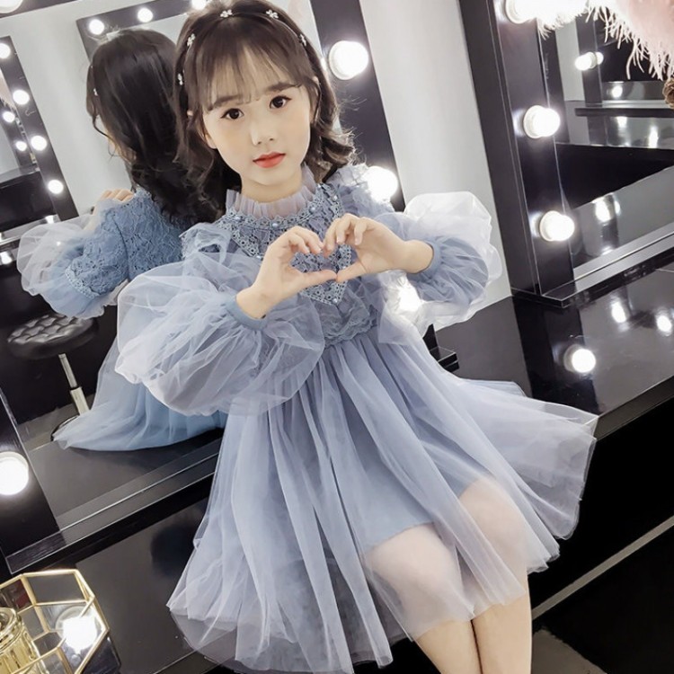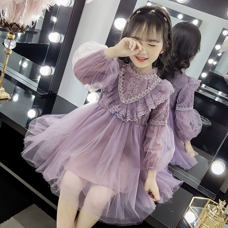 女童连衣裙子春装新款小女孩蕾丝长袖儿童蓬蓬纱裙洋气宝宝公主裙