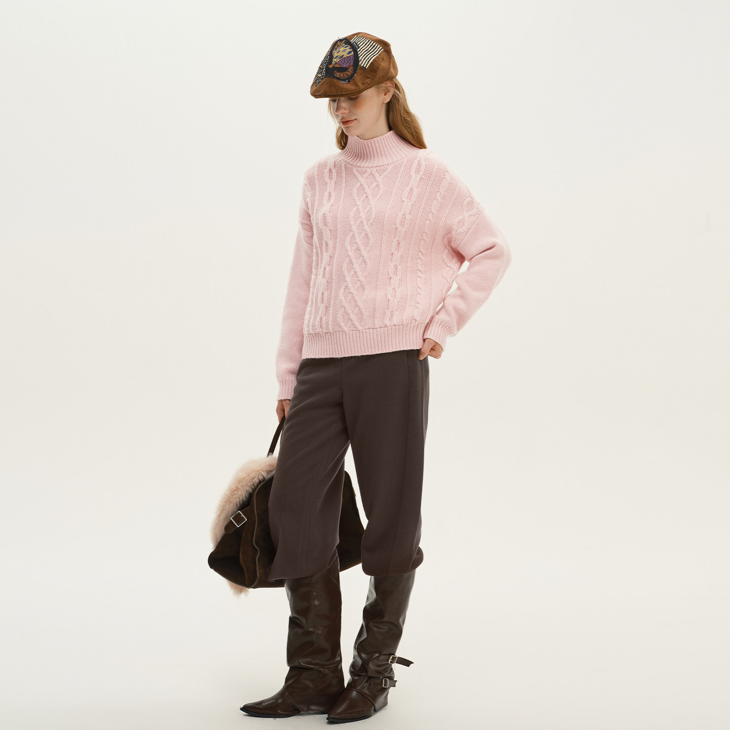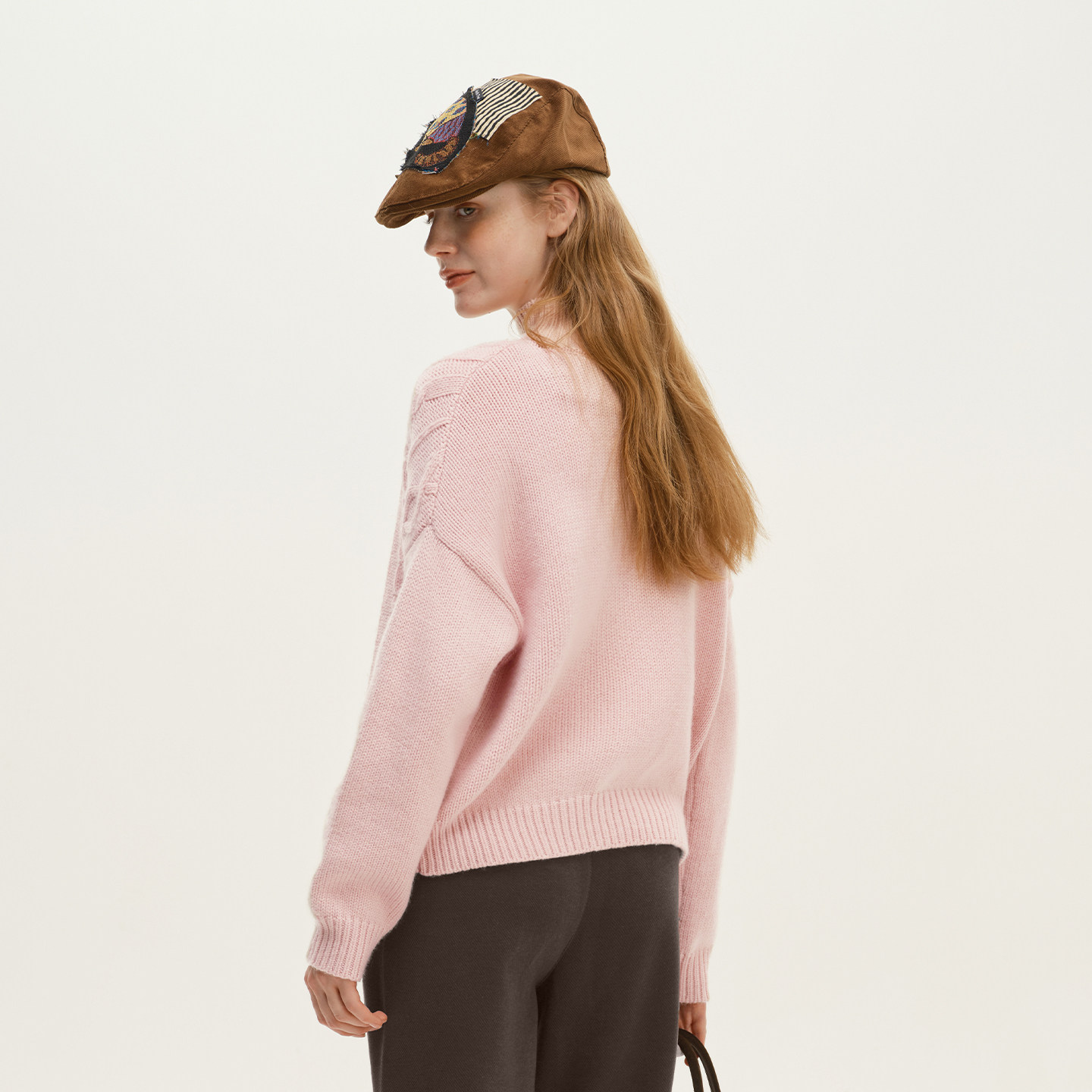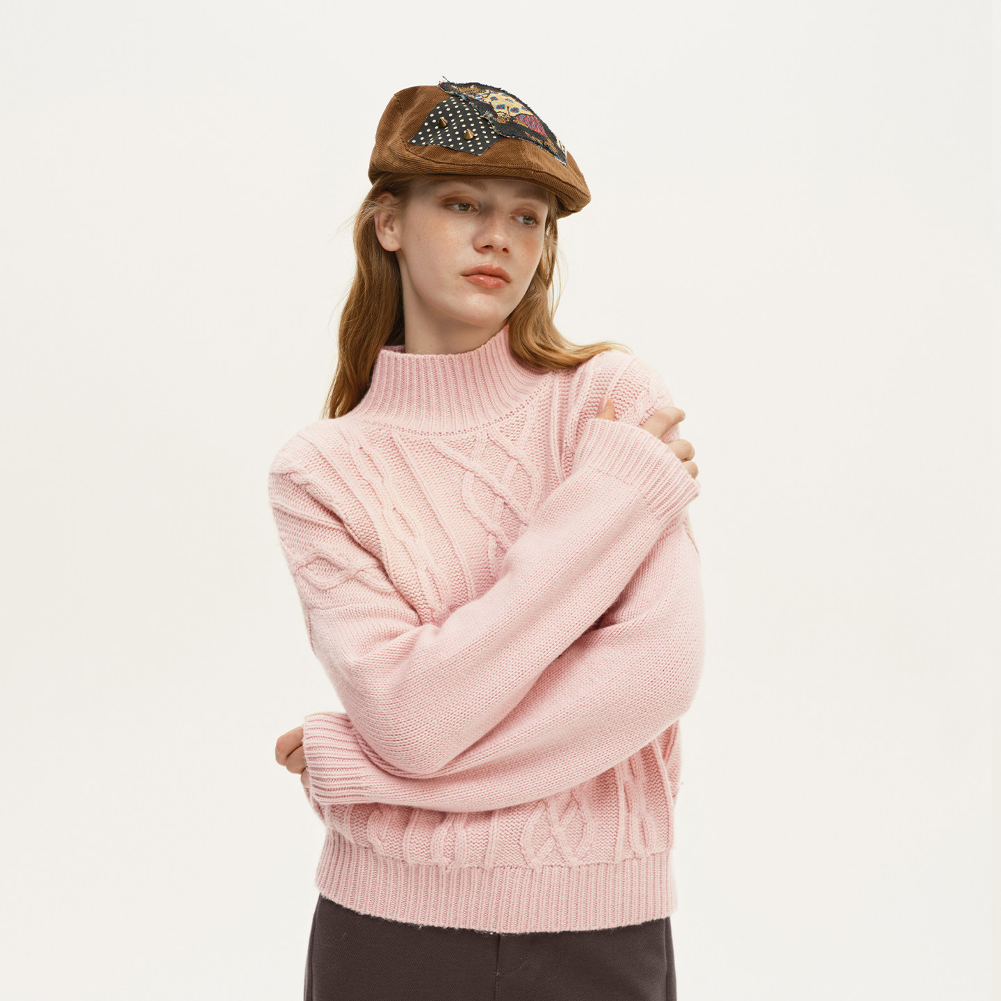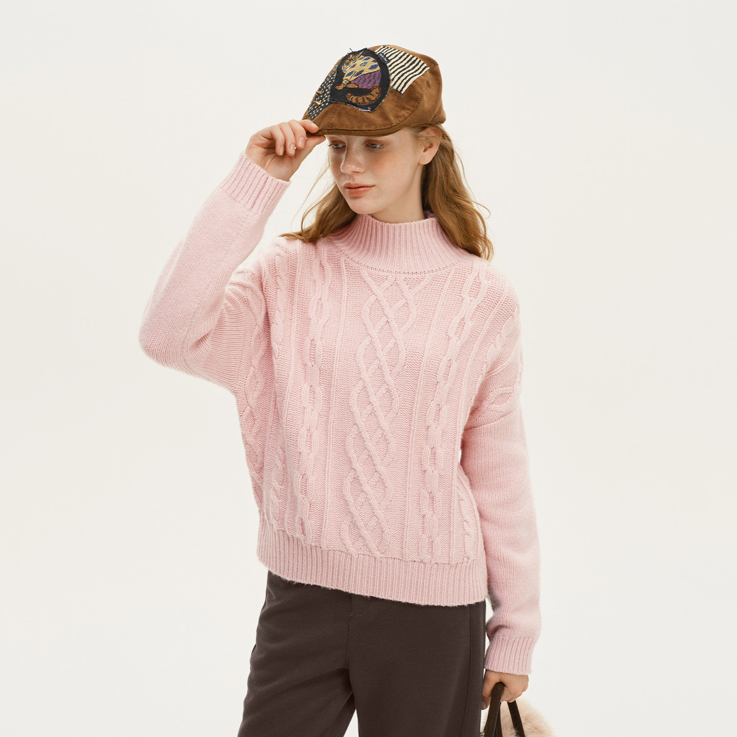 艺之卉俏皮软语风粉色麻花针织衫毛衣上衣2025秋冬新款