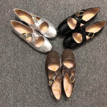 羊皮软底圆头交叉带玛丽珍平底鞋