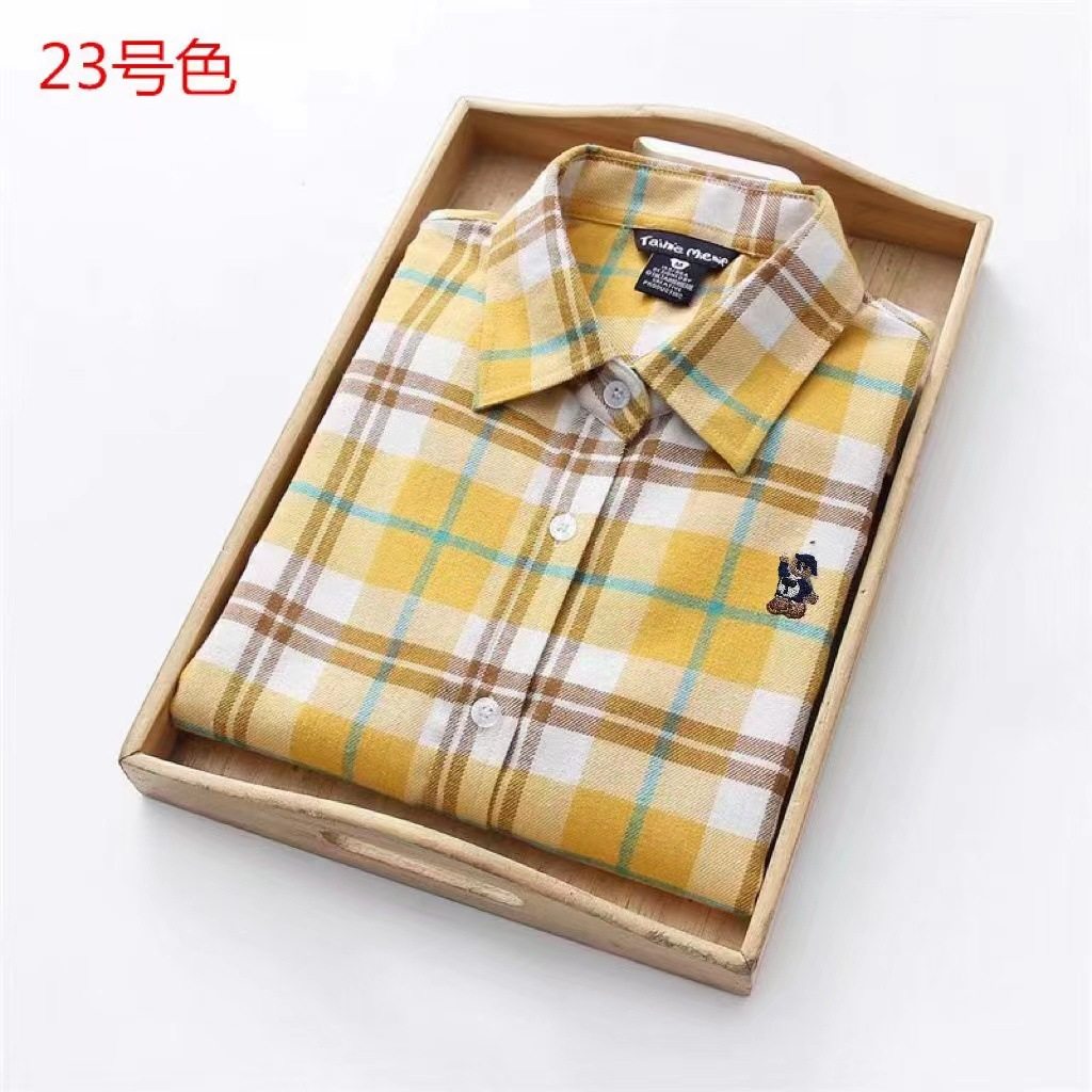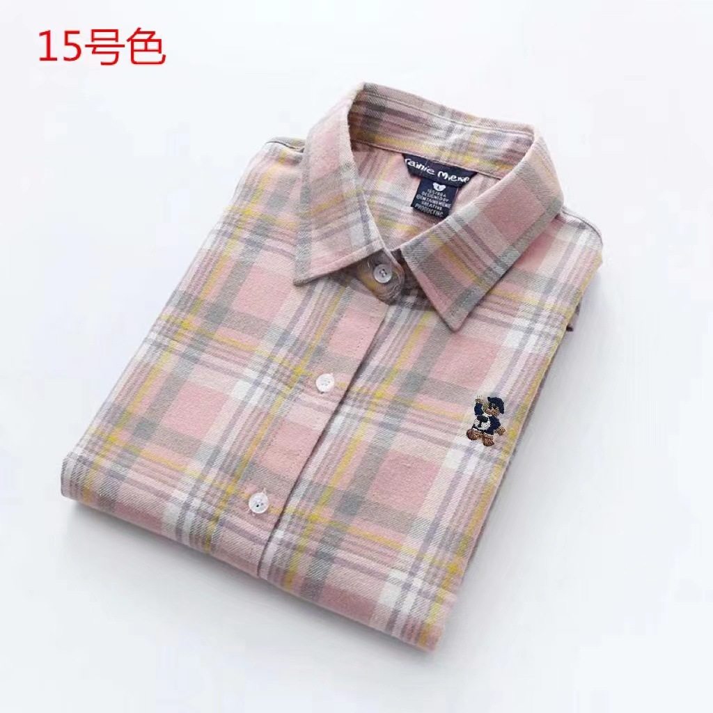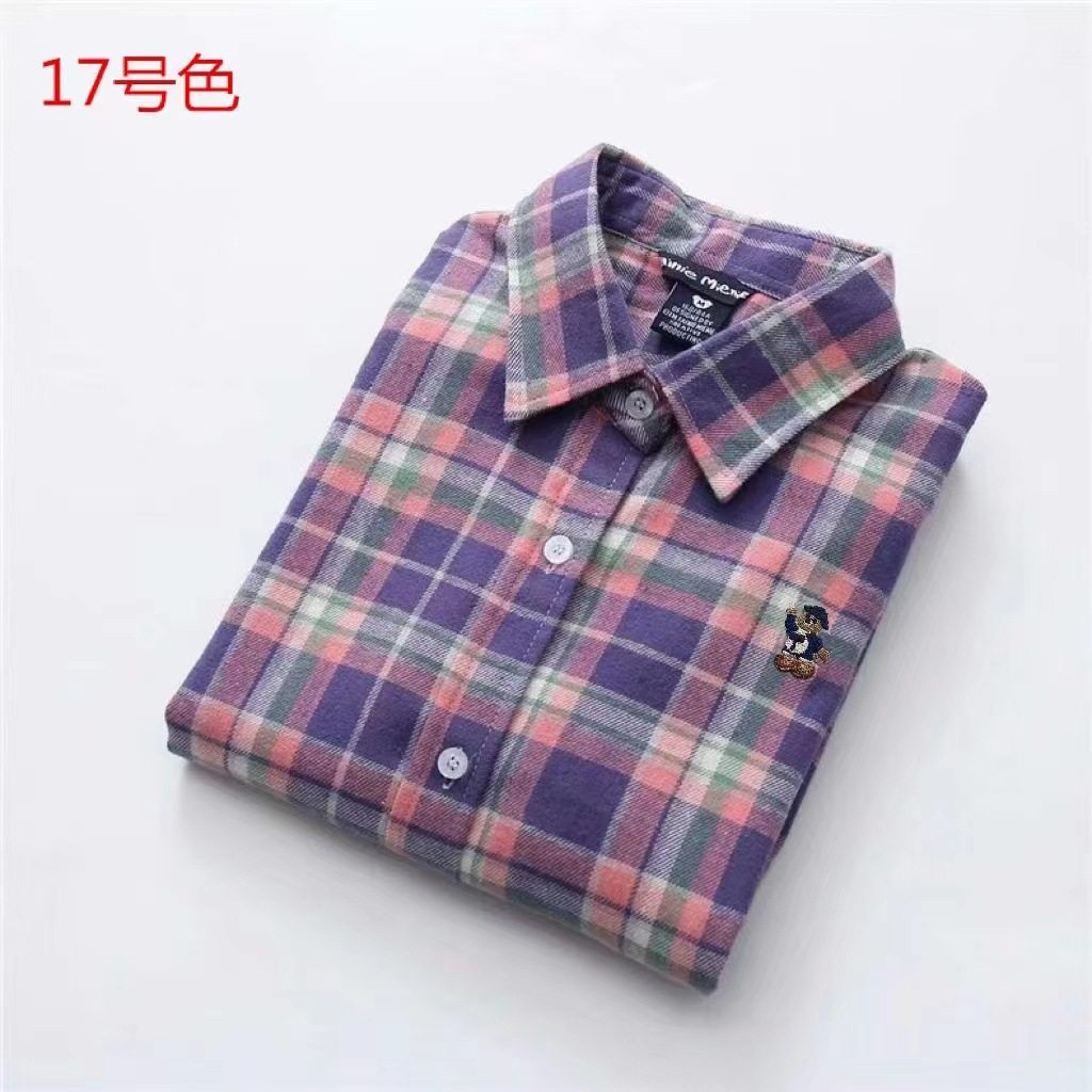 2025春秋新款磨毛格子衬衫女长袖韩版百搭纯棉格子打底衬衣法兰绒