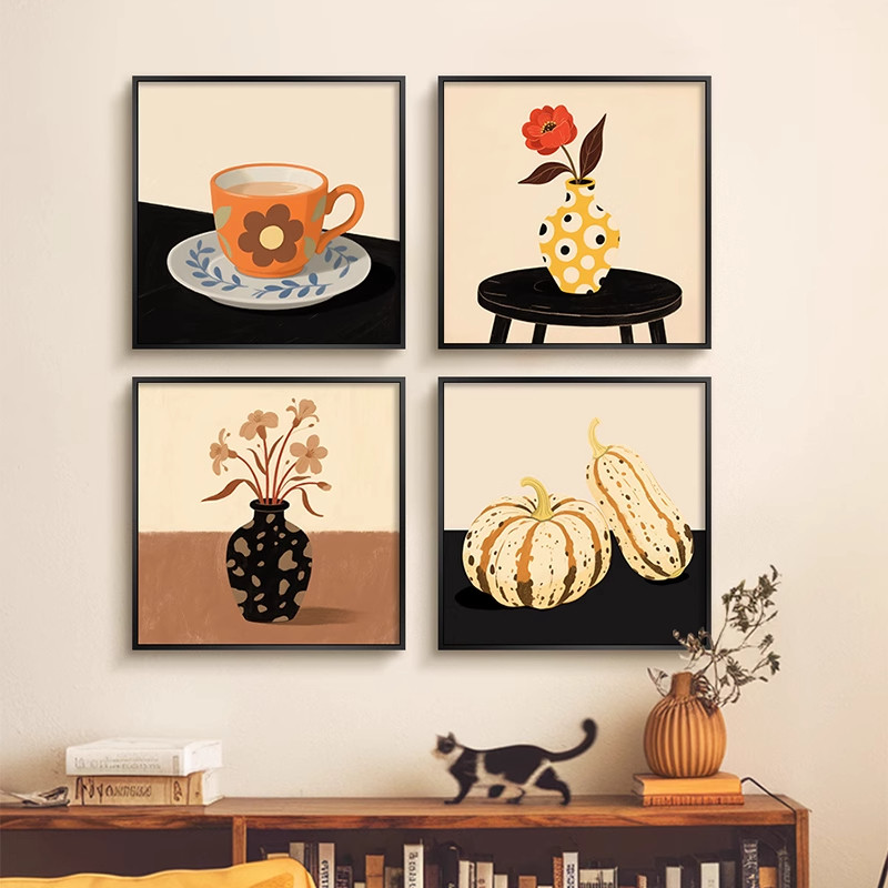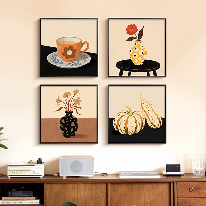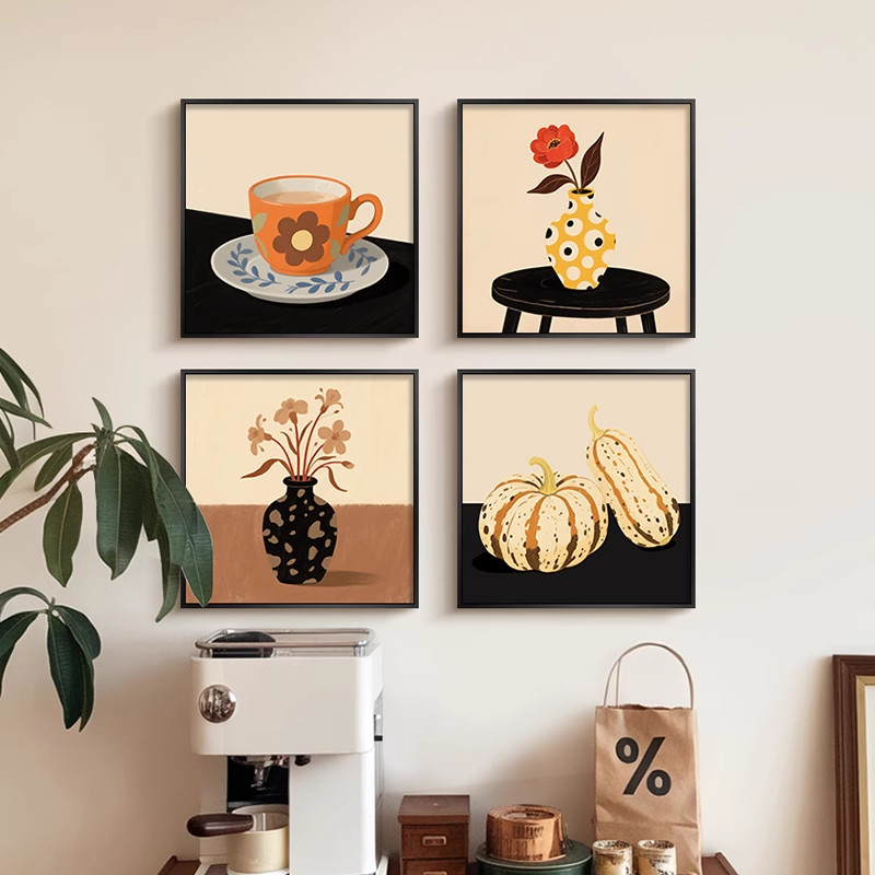 中古小众餐厅组合装饰画法式花卉咖啡厅挂画美拉德色系客厅卧室画