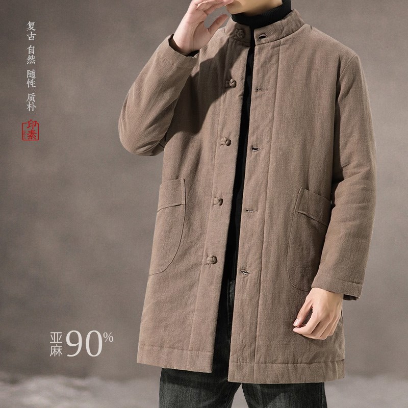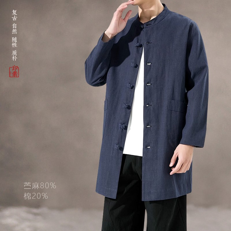 春秋80%苎麻男装棉麻外套男中国风亚麻中长款上衣中式风衣唐装