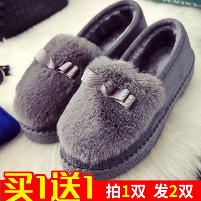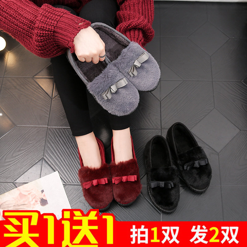 冬季豆豆鞋休闲棉鞋加绒毛毛鞋