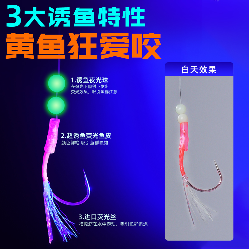 大黄鱼夜光双钩荧光钓组舟山渔山船串钩船钓钩海钓真鲷黄姑鱼黄组