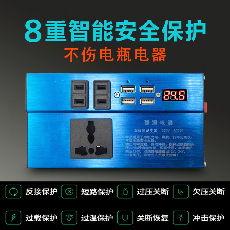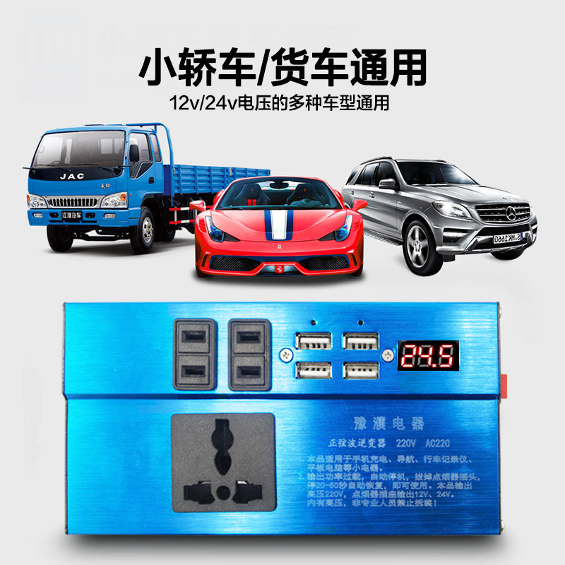 货车载逆变变器正玄波转换噐充电器12v24v伏通用转220v大功率