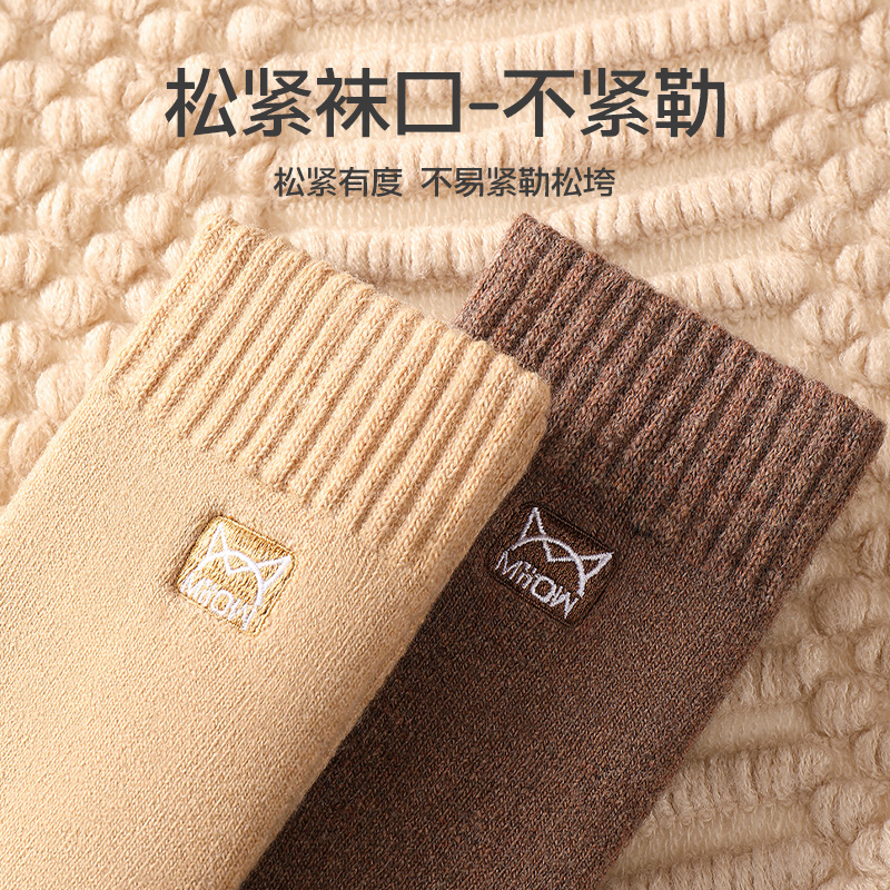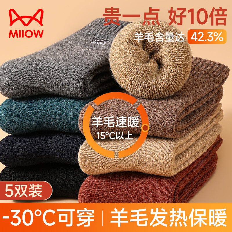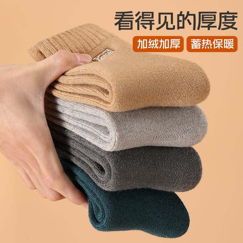 猫人羊毛袜男士秋冬季中筒袜加绒加厚保暖发热毛圈袜防寒袜子男生