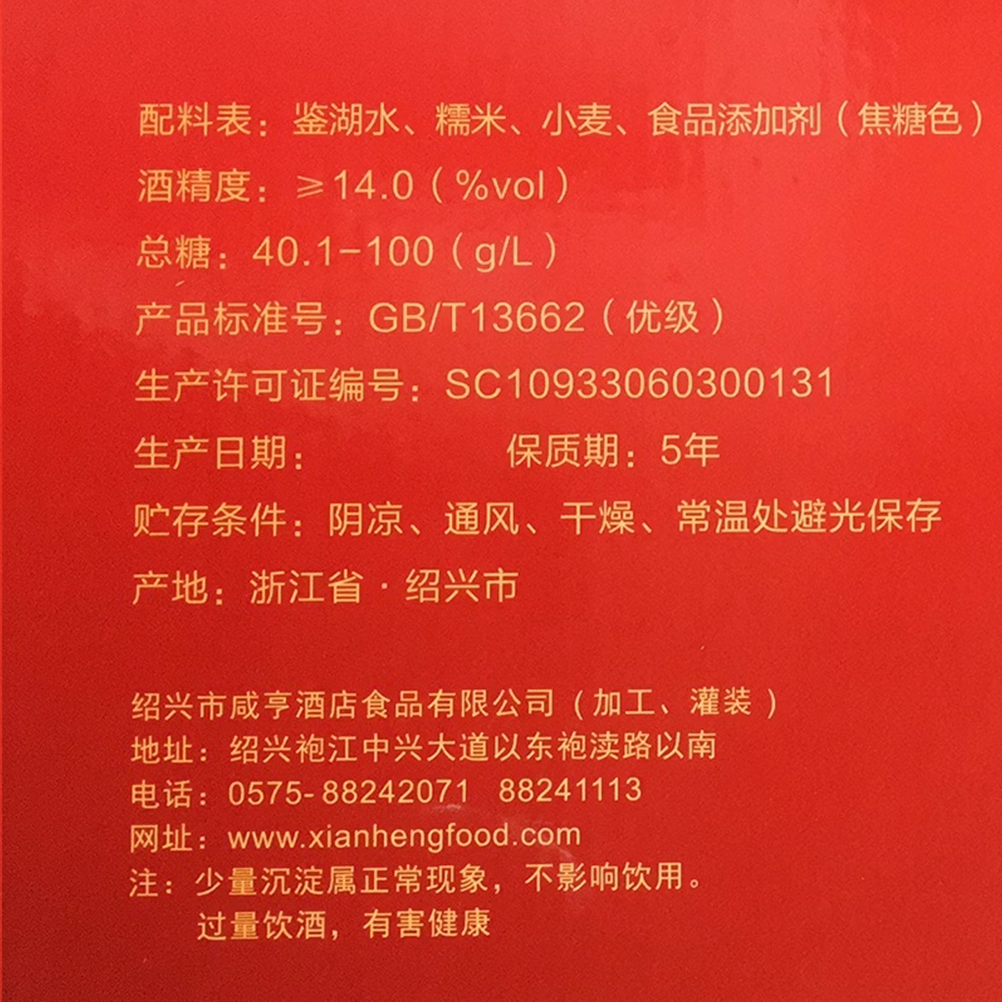 绍兴咸亨酒店食品太雕黄酒十年陈500mlx6瓶礼盒箱装糯米黄酒