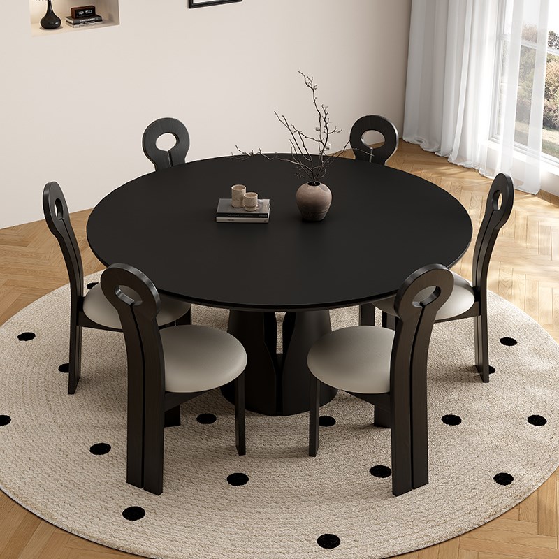 轻奢实木圆形餐桌椅客厅2025新款中古风法式复古极简家用小户型