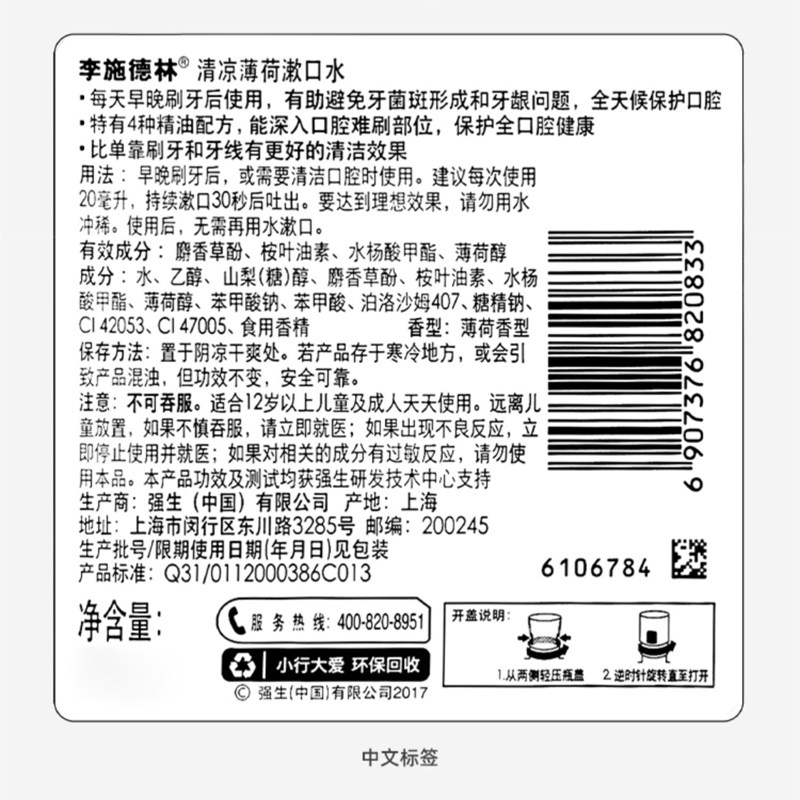 李施德林清凉薄荷漱口水清新口气预防牙龈问题及牙菌斑形成清洁