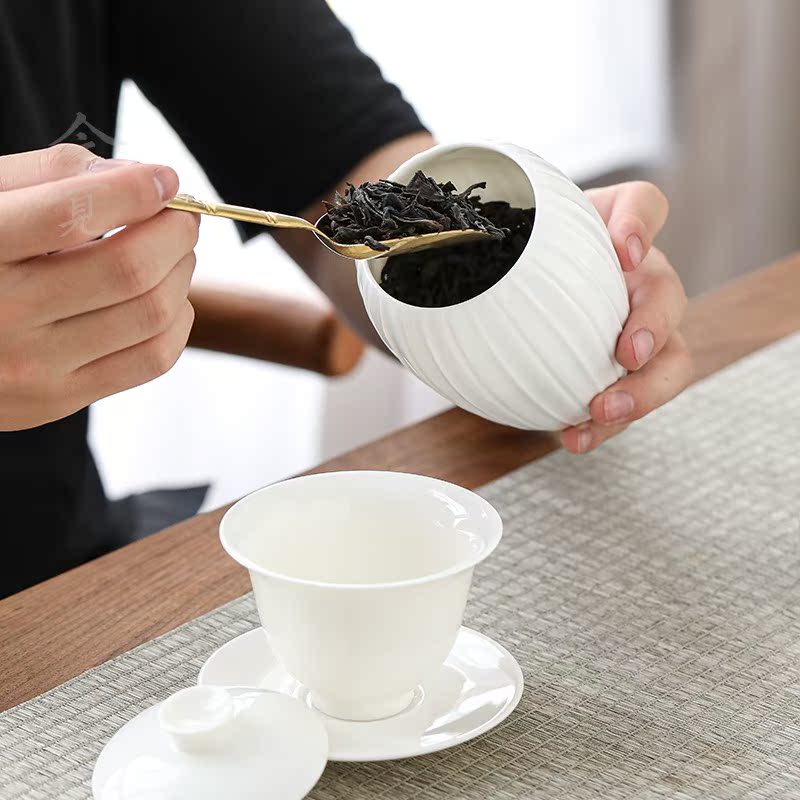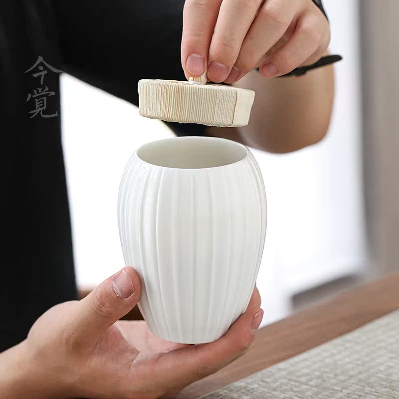 今觉德化白瓷茶叶罐密封罐精品高档甜白陶瓷茶罐高端茶叶储存罐