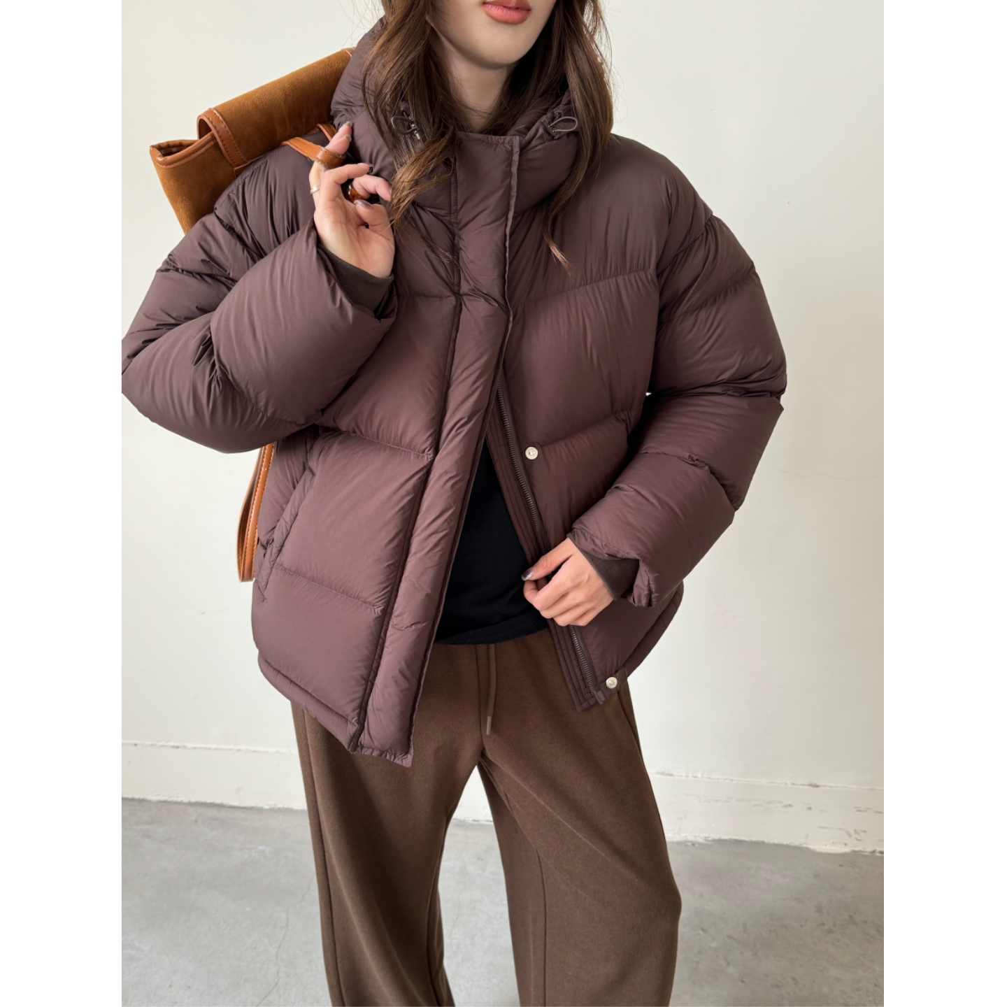 云朵系列95白鸭绒羽绒服女短款2025新款冬季简约泡芙羽绒外套连帽