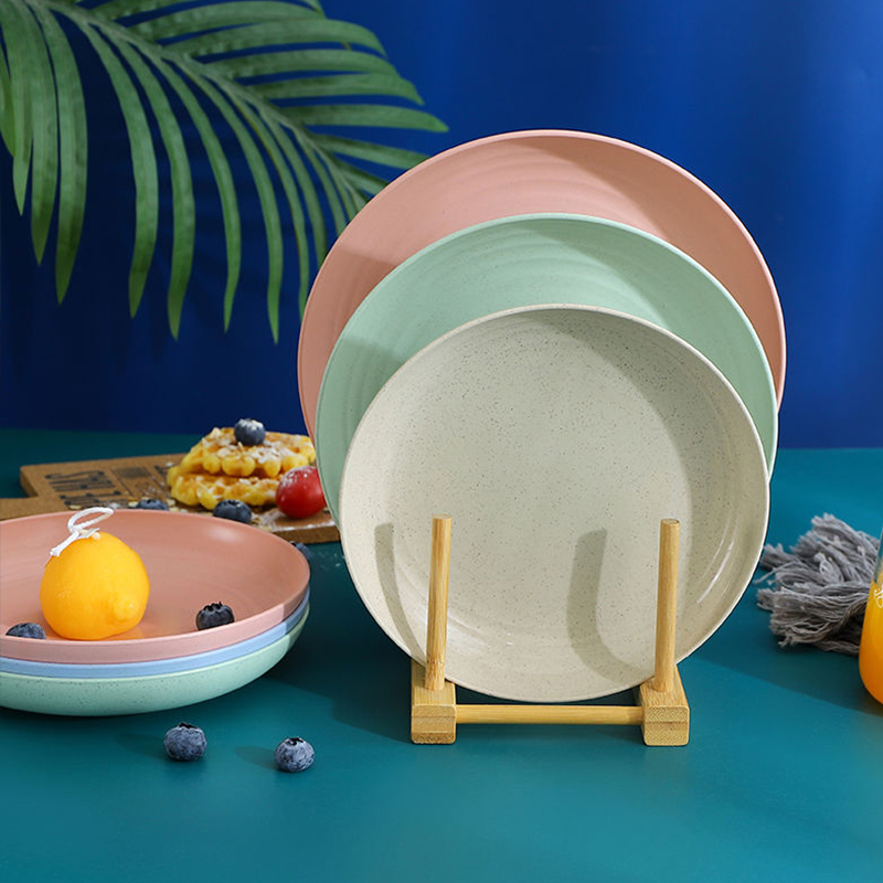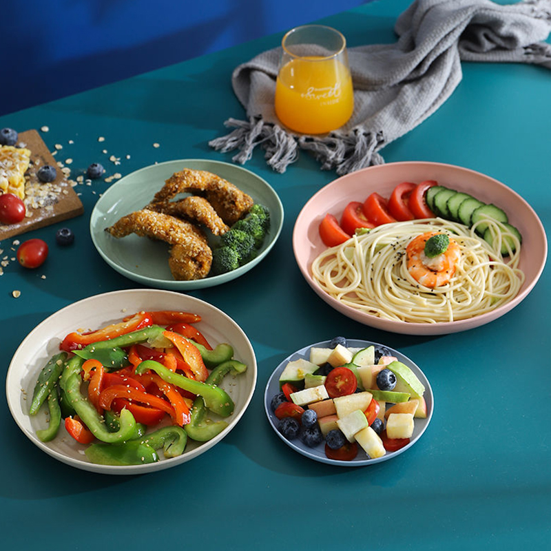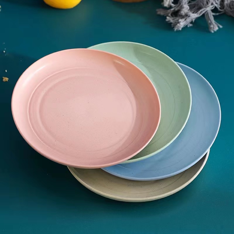 北欧圆形塑料盘子菜盘家用麦秸秆骨碟盘餐具套装水果盘商用早餐盘