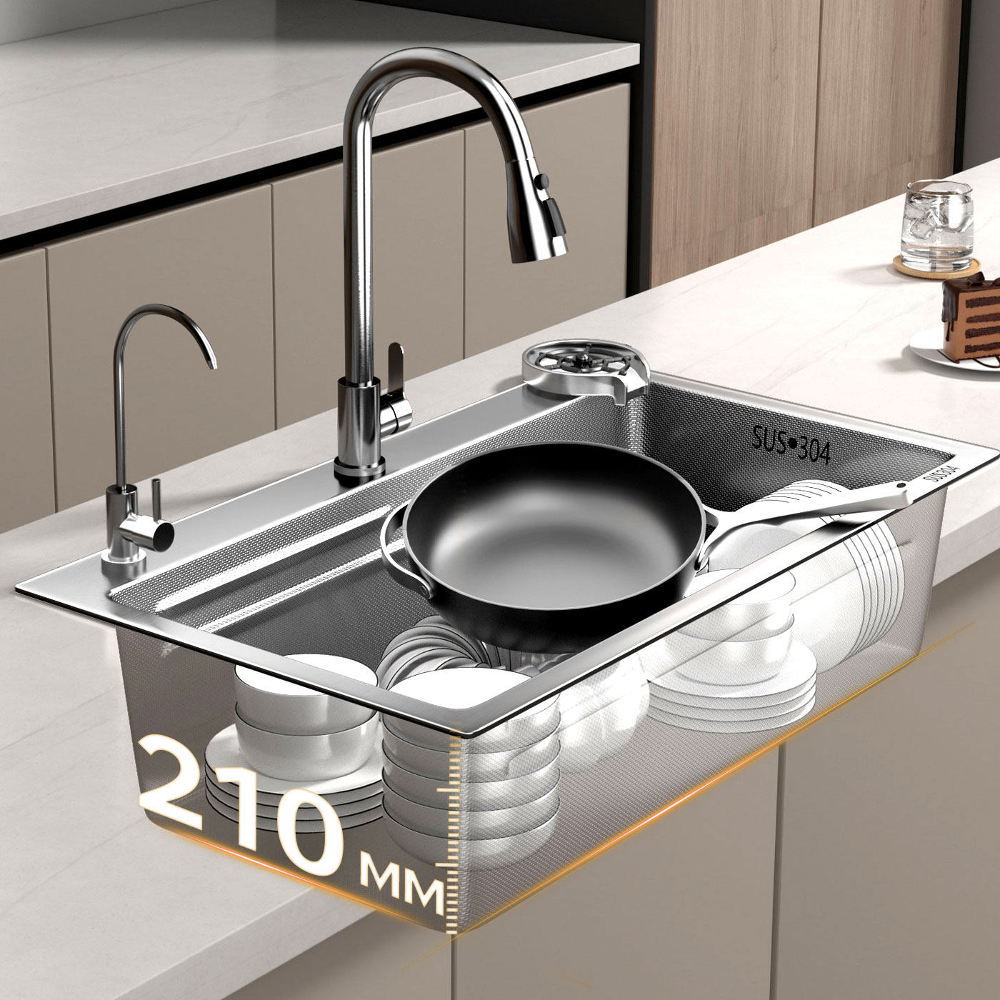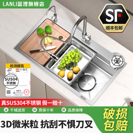 304加厚不锈钢手工拉丝水槽大单槽厨房洗菜盆洗碗池台下盆家用