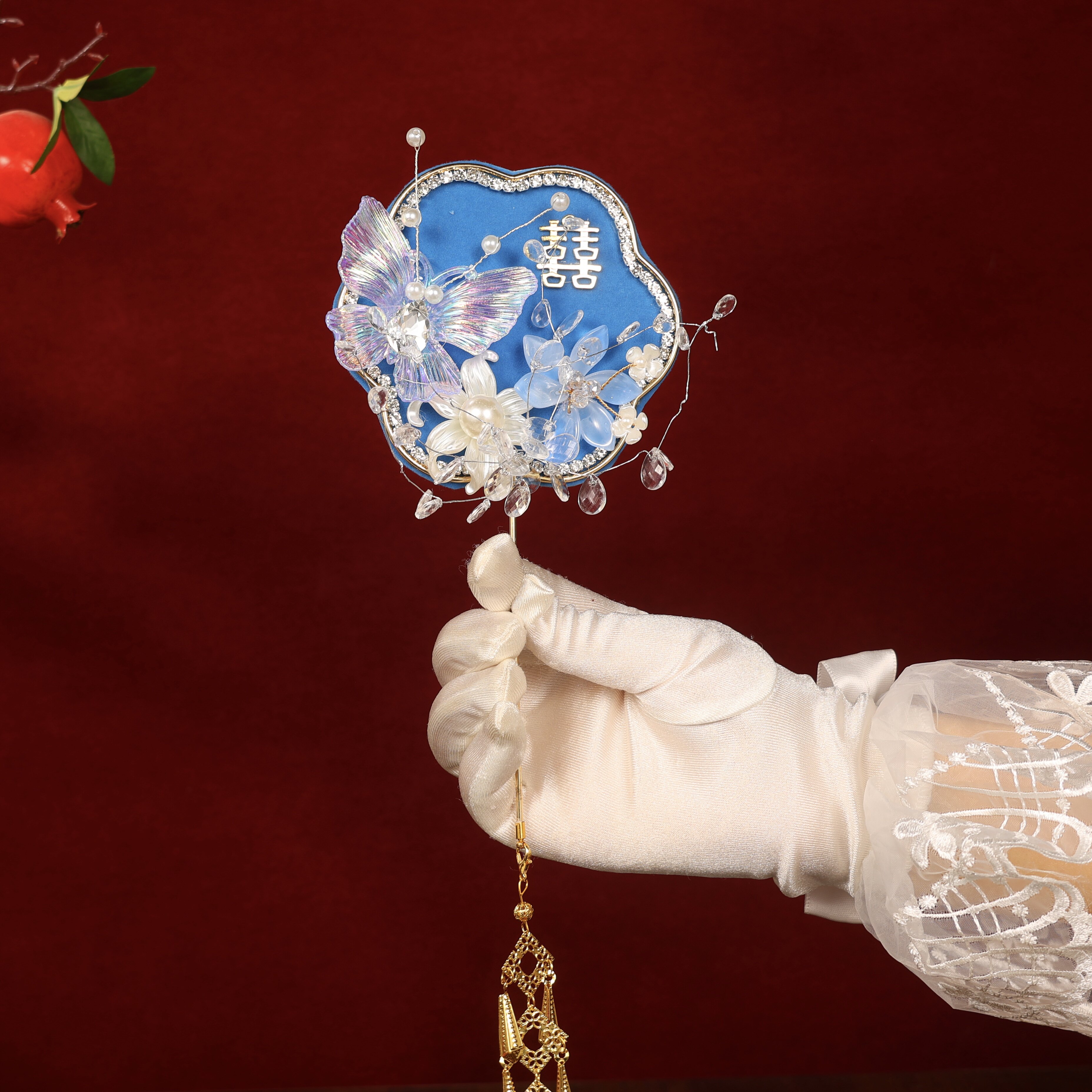团扇结婚新娘扇子秀禾迷你小扇子接亲新中式拍照道具婚礼手工婚扇