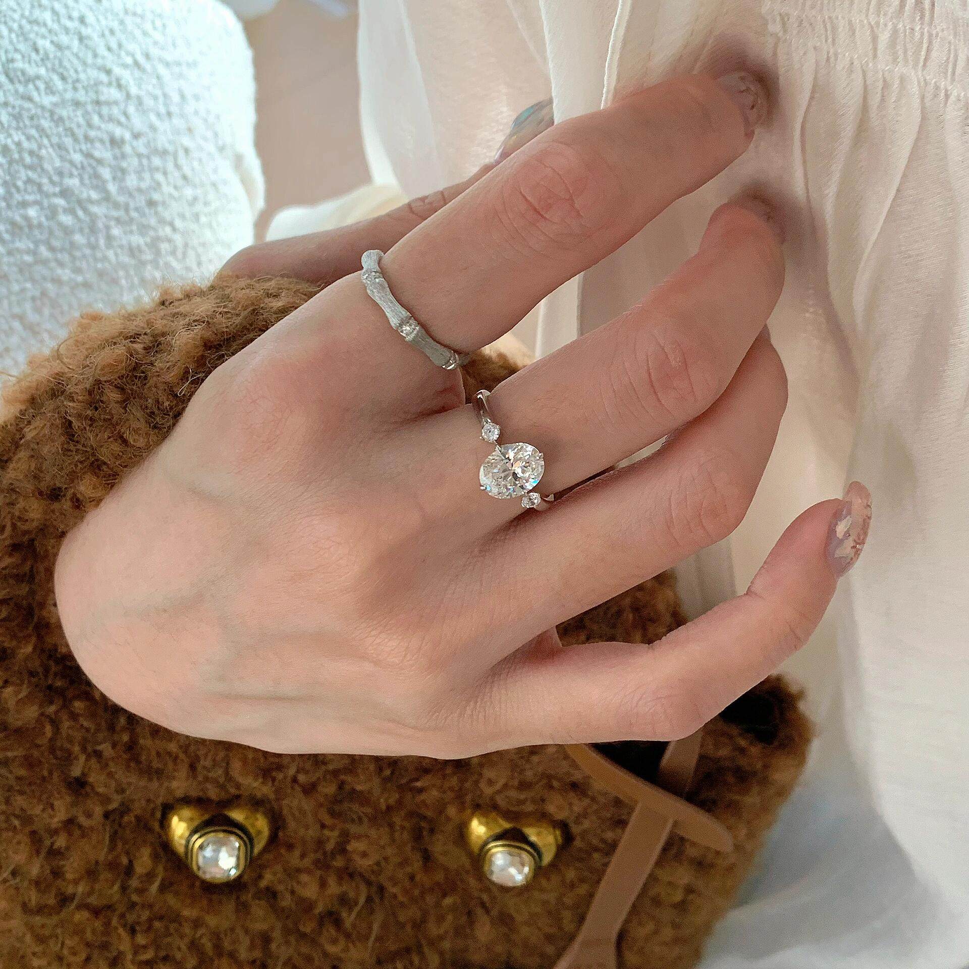 “悬浮”鸽子蛋钻戒S925纯银女2克拉求婚订婚结婚仿真钻石婚戒