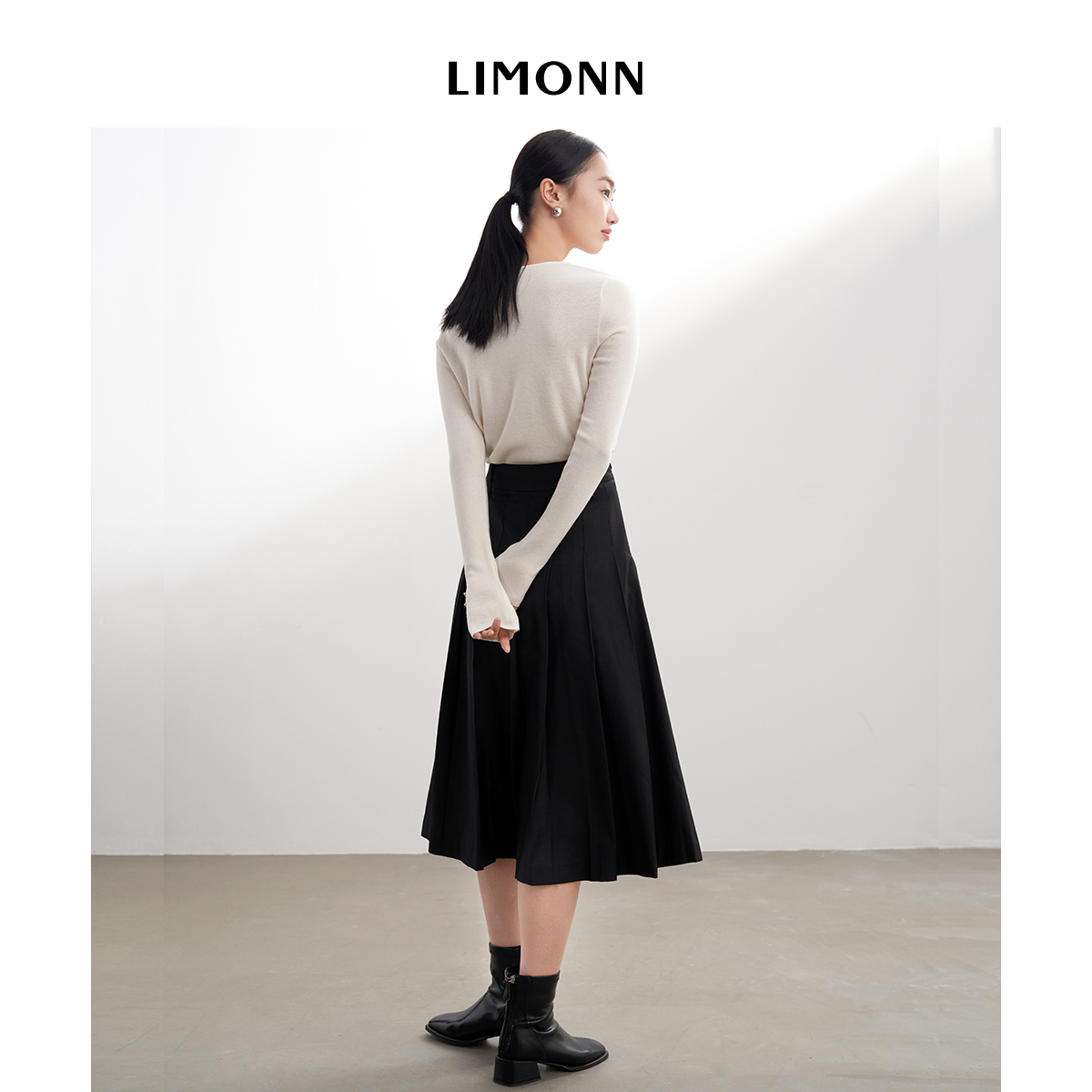 LIMONN复古通勤气质2025新款女士百褶半身裙a字裙高腰中长款显瘦