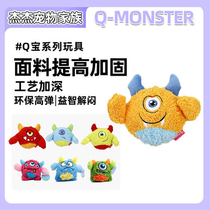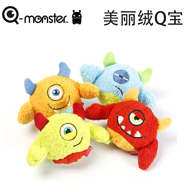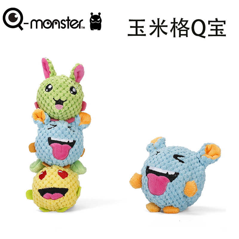 Q-Monster初代美丽绒玉米格Q宝毛绒狗狗宠物玩具互动弹力发声球
