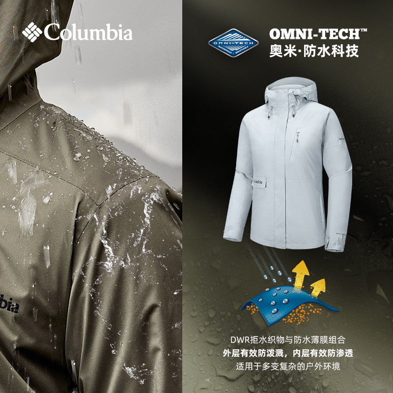 张婧仪同款 哥伦比亚女子防水冲锋衣650蓬羽绒服三合一外套XR2978