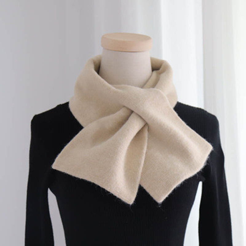 秋冬季交叉小围巾女毛毛线百搭男保暖薄纯色韩版短款针织围脖护颈