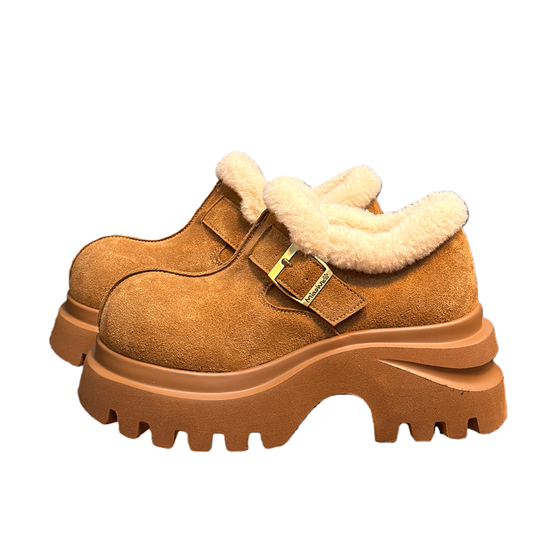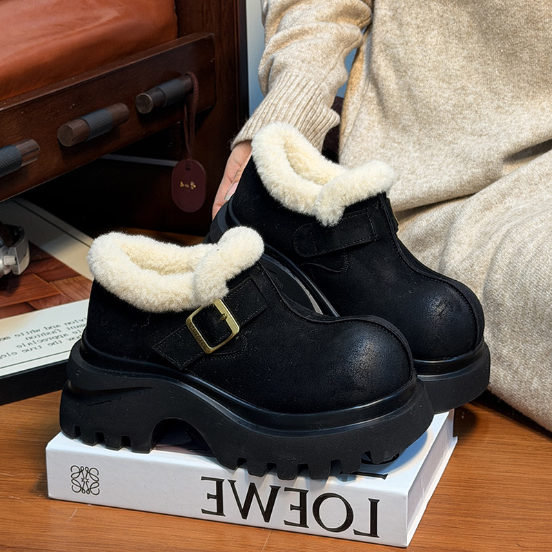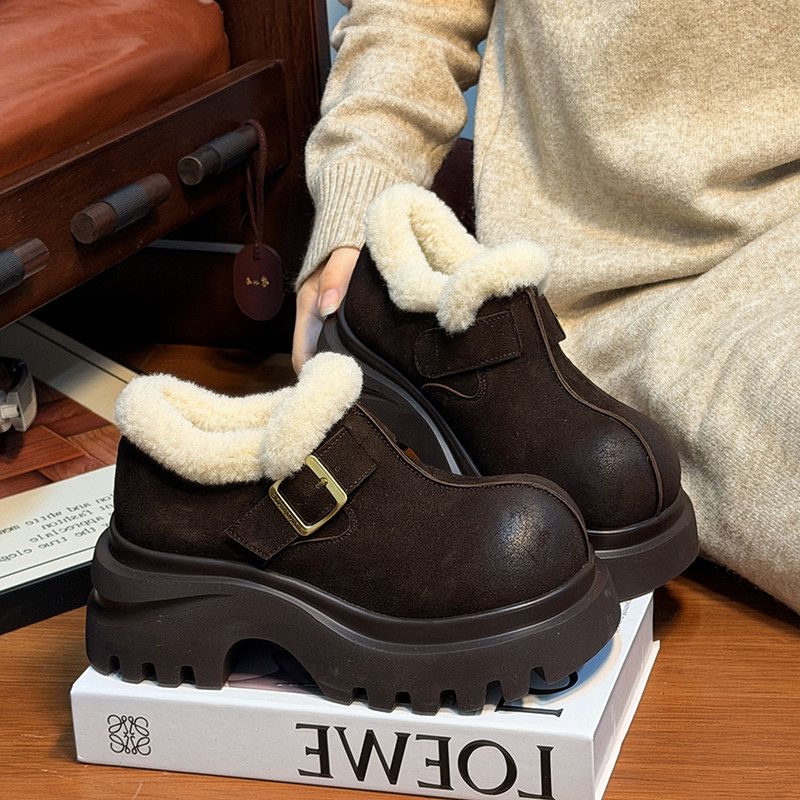 复古真皮松糕厚底加绒乐福鞋