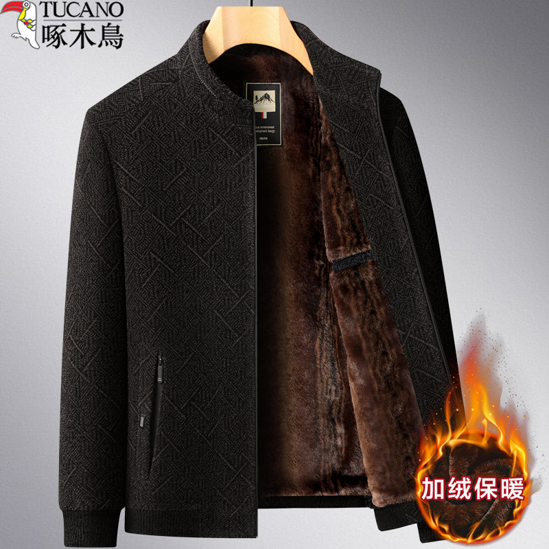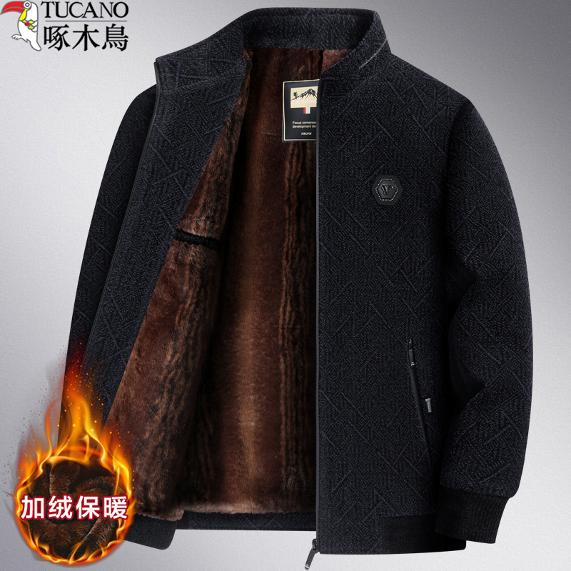 啄木鸟中年男士外套夹克衫加绒加厚款秋冬季中老年人棉衣服爸爸装