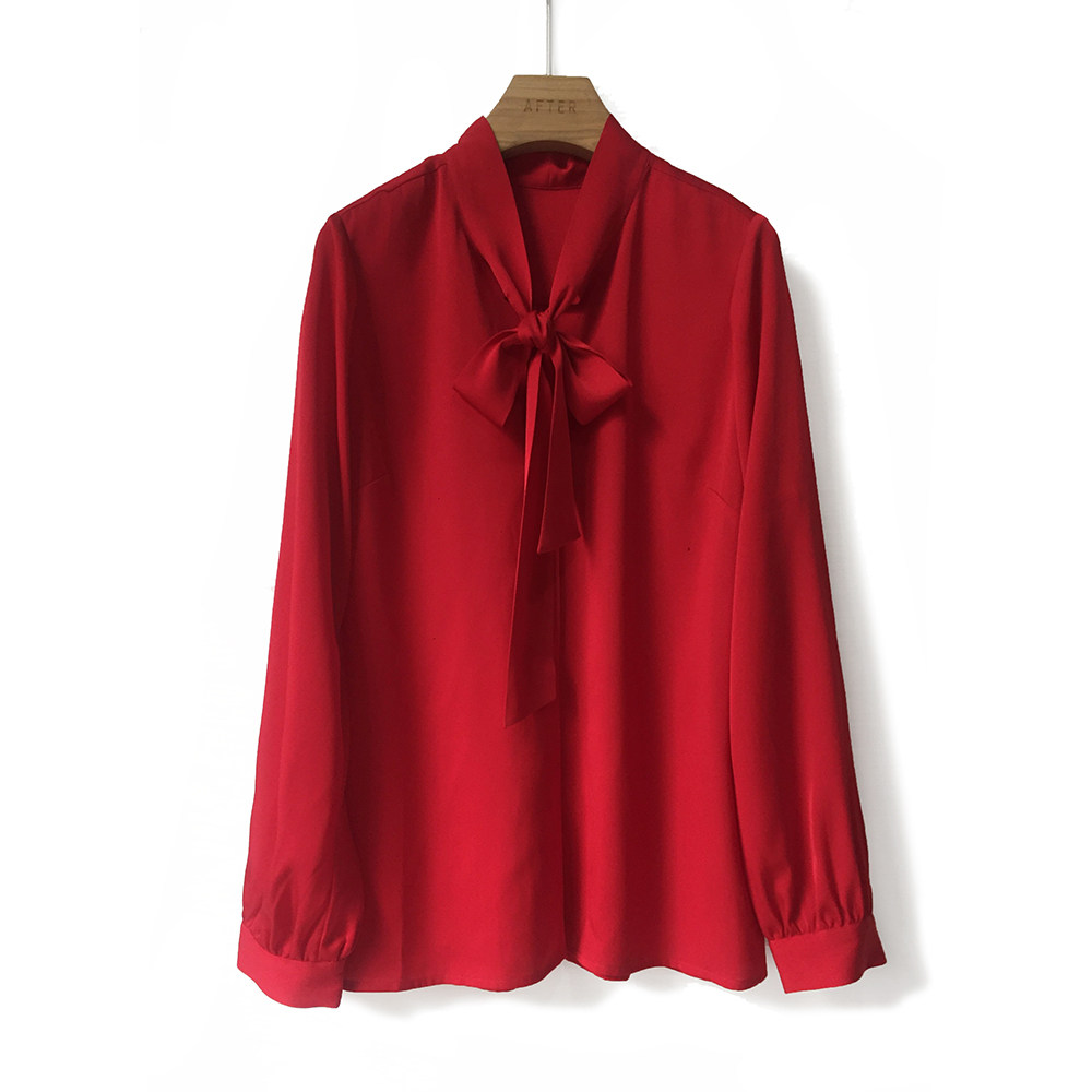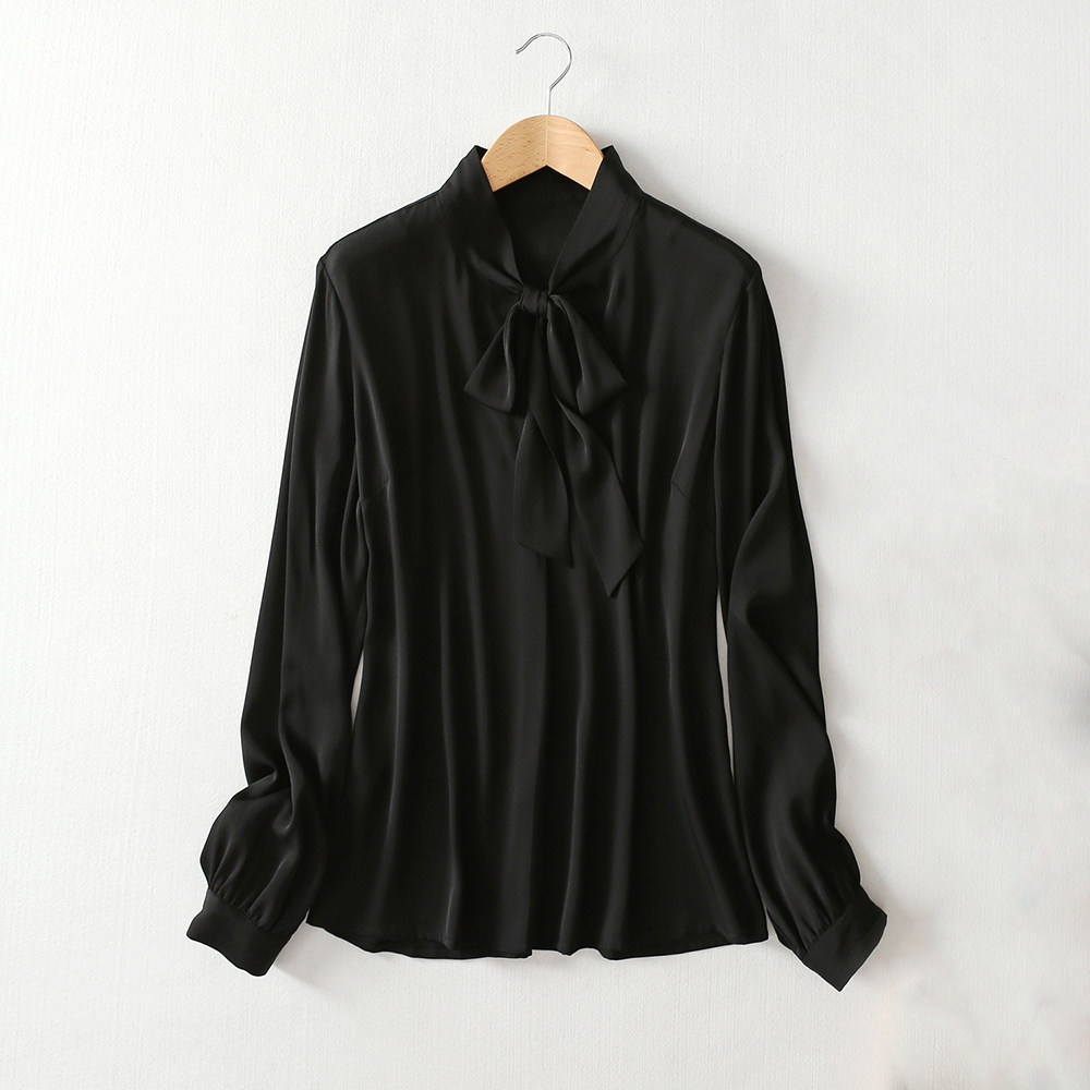 春款 春秋重磅飘带领纯色长袖精英律师真丝衬衫女 桑蚕丝长袖