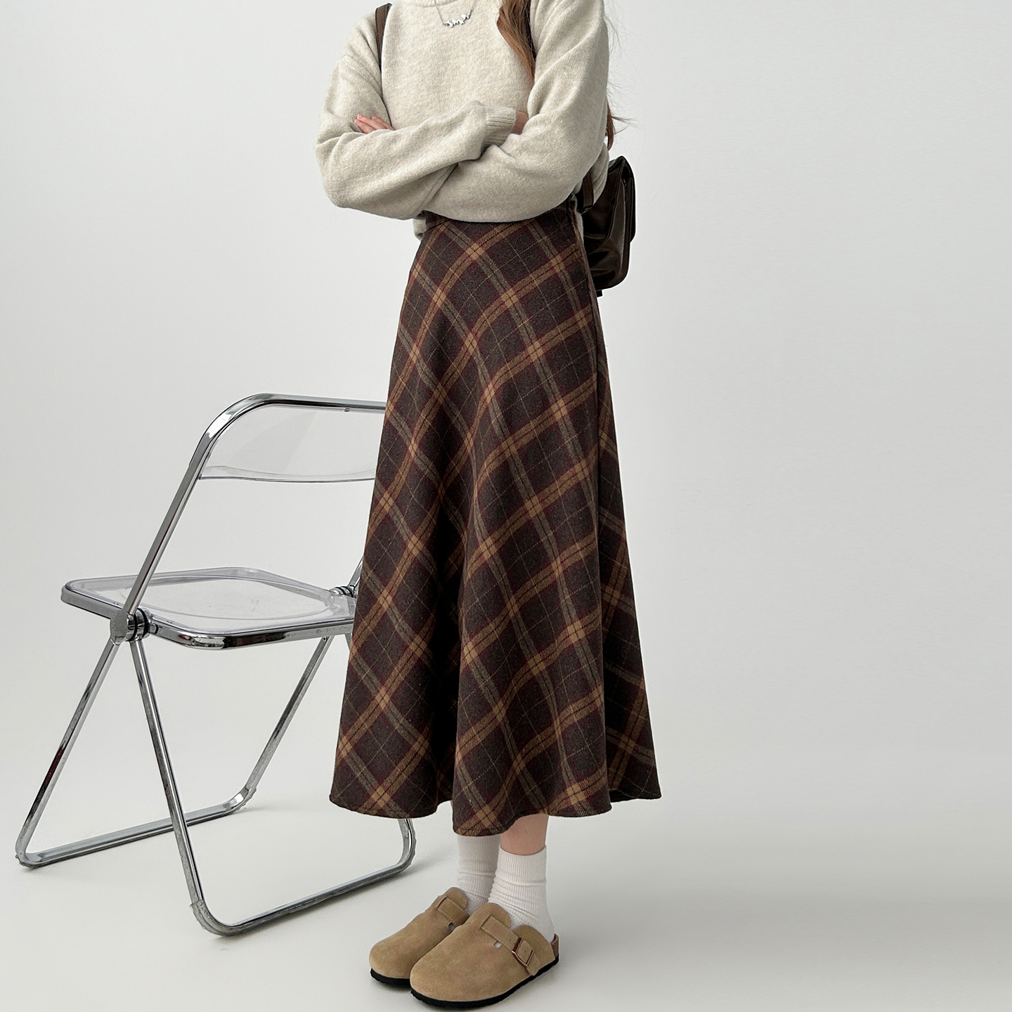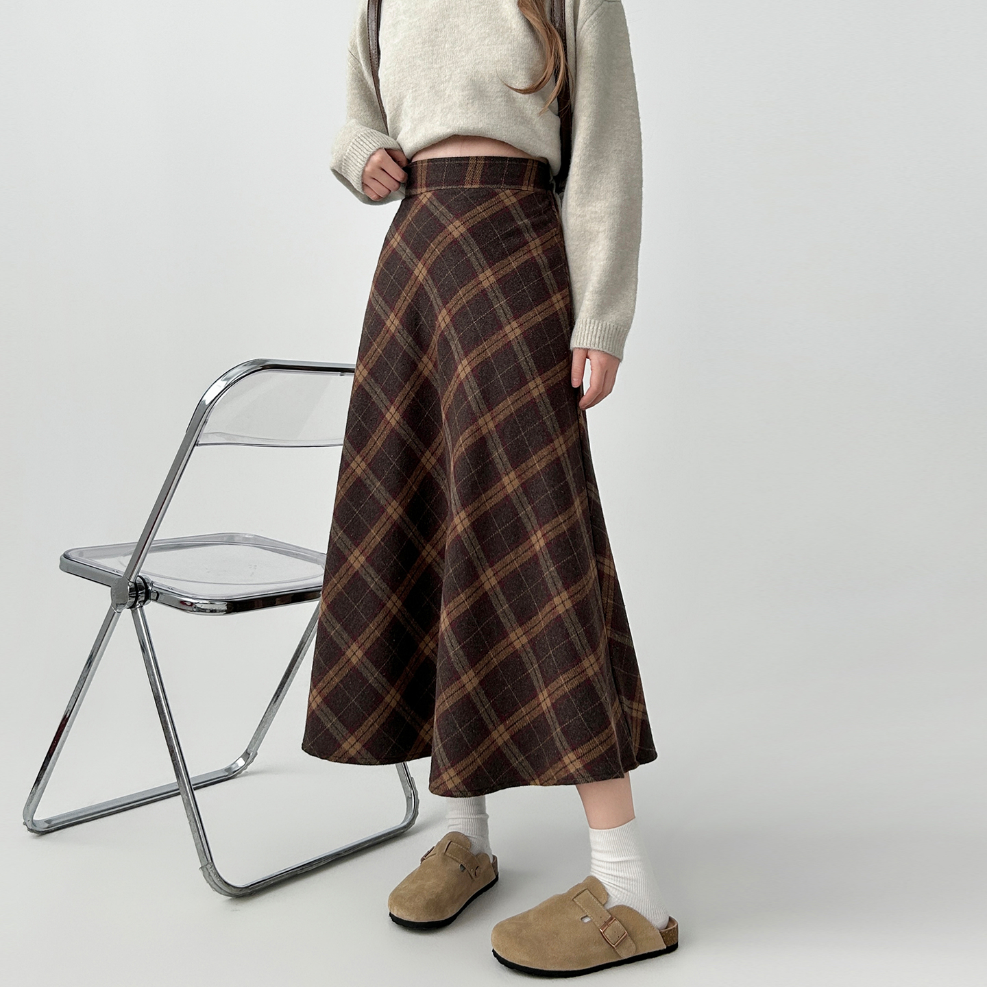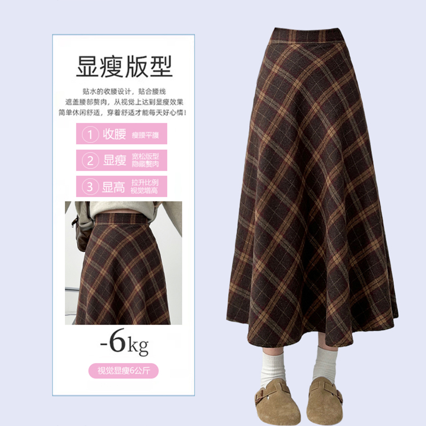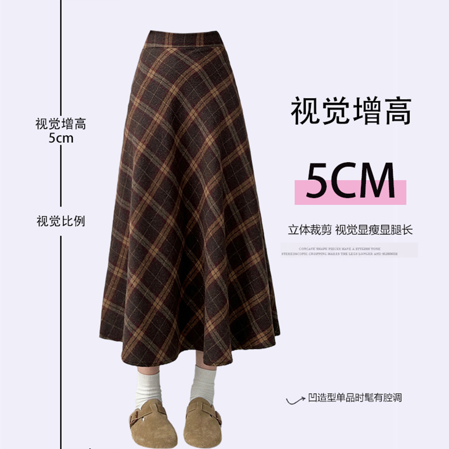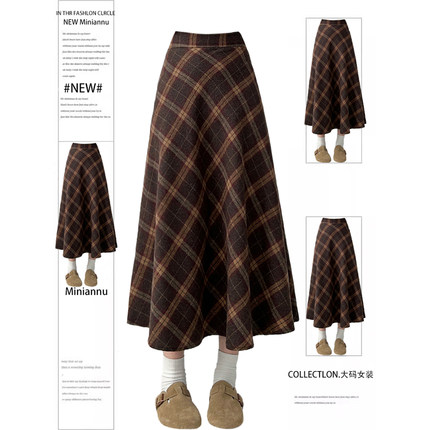 特大码胖mm美式复古格纹毛呢半身裙女美拉德穿搭设计感中长款裙子