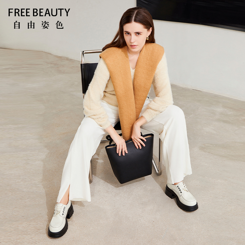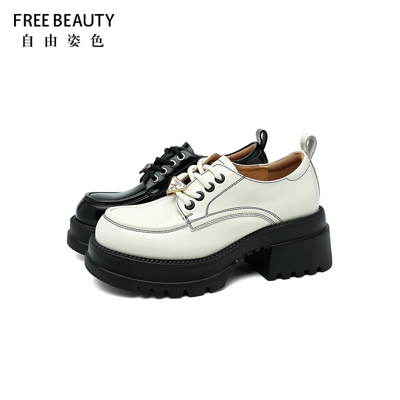 商场同款春秋新款自由姿色厚底增高系带学院风乐福鞋深口单鞋