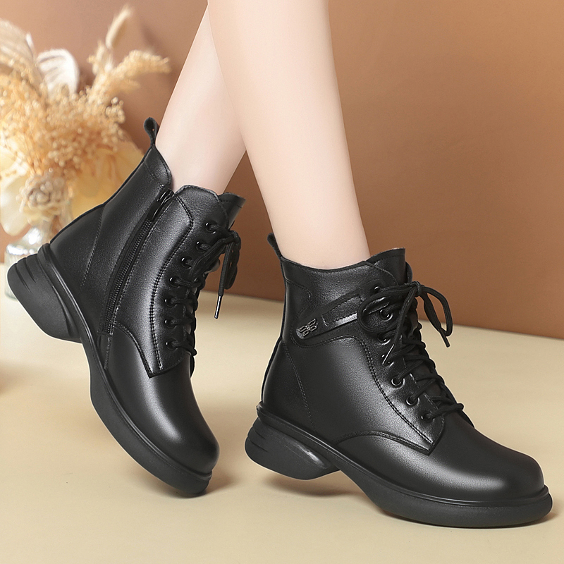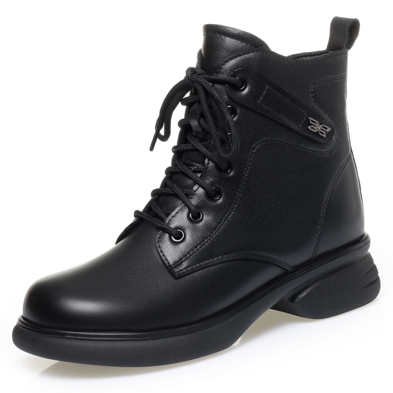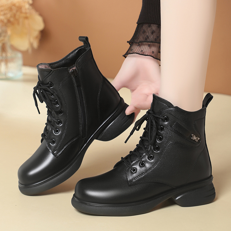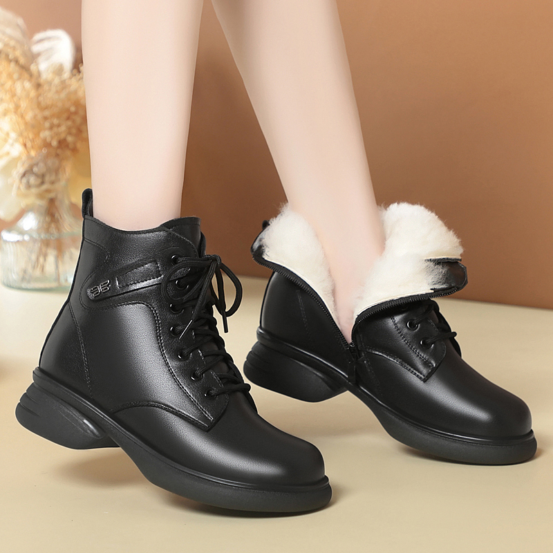 冬季新款真皮马丁靴女大码厚底短靴加绒女靴羊毛棉靴冬靴棉皮鞋子