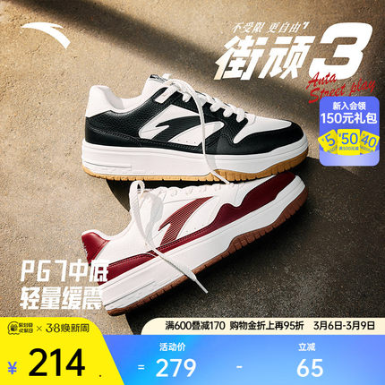 安踏PG7 街顽3丨滑板鞋低帮黑白板鞋男春季熊猫色潮流经典运动鞋