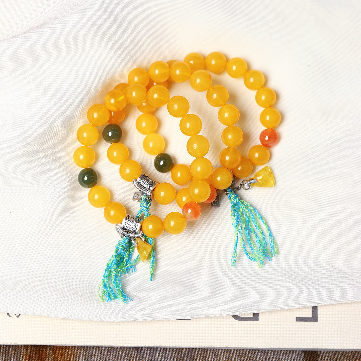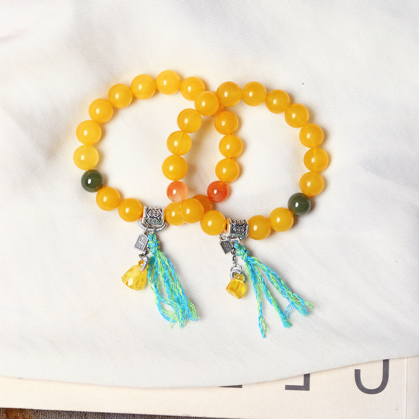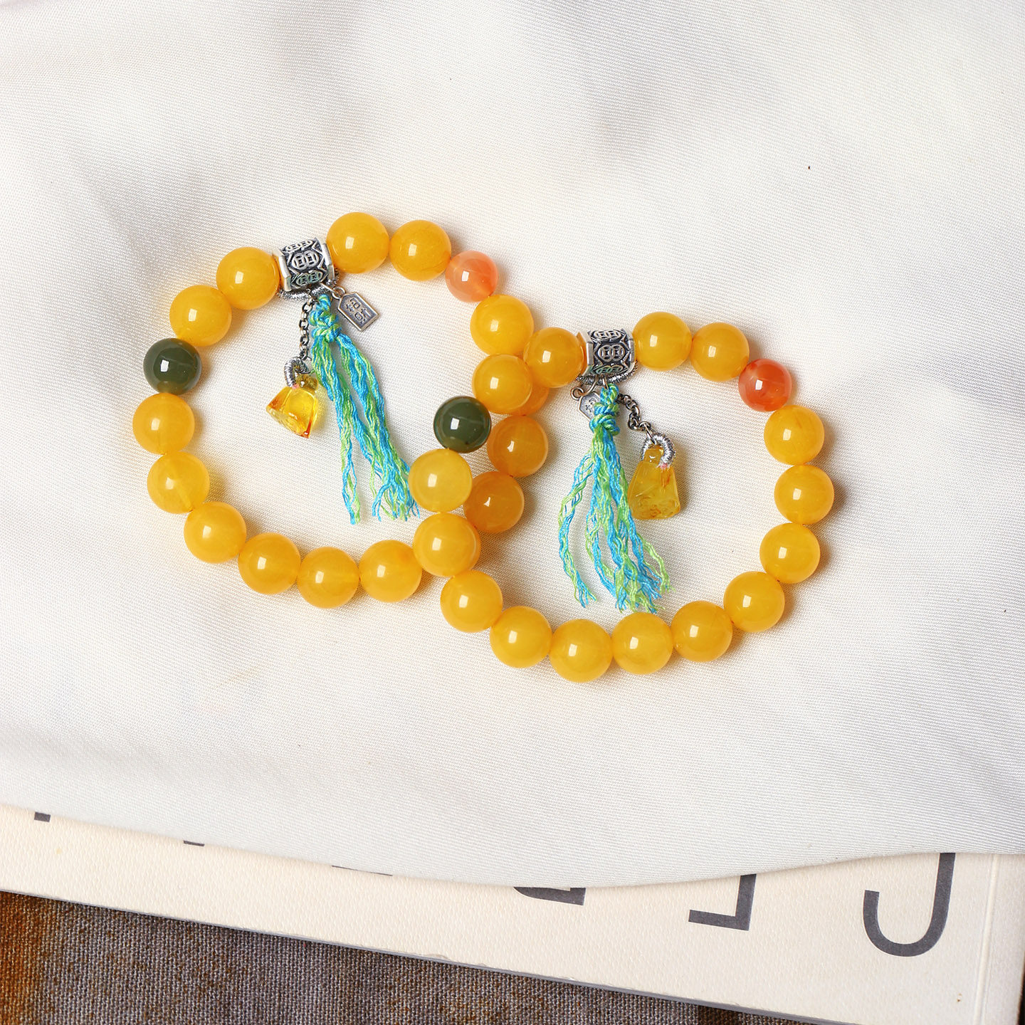 天然蜜蜡圆珠原创搭配款手链 女款琥珀老蜜蜡手串饰品礼物
