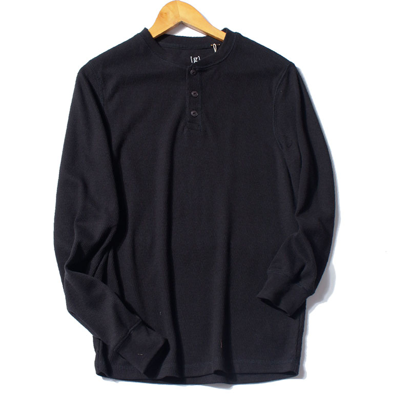 清仓处理!美式复古亨利衫水洗做旧宽松大码套头长袖T恤纯色男潮