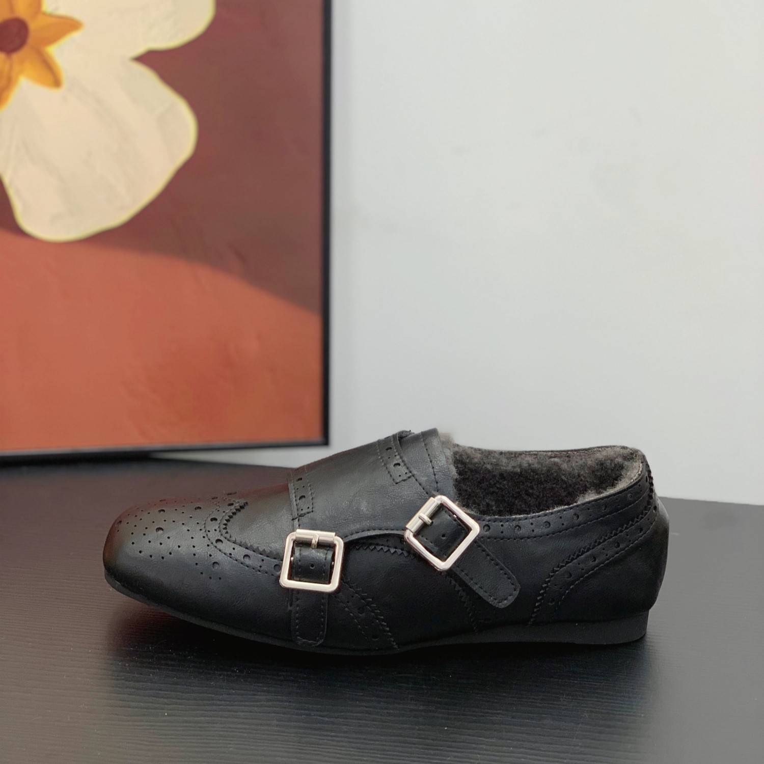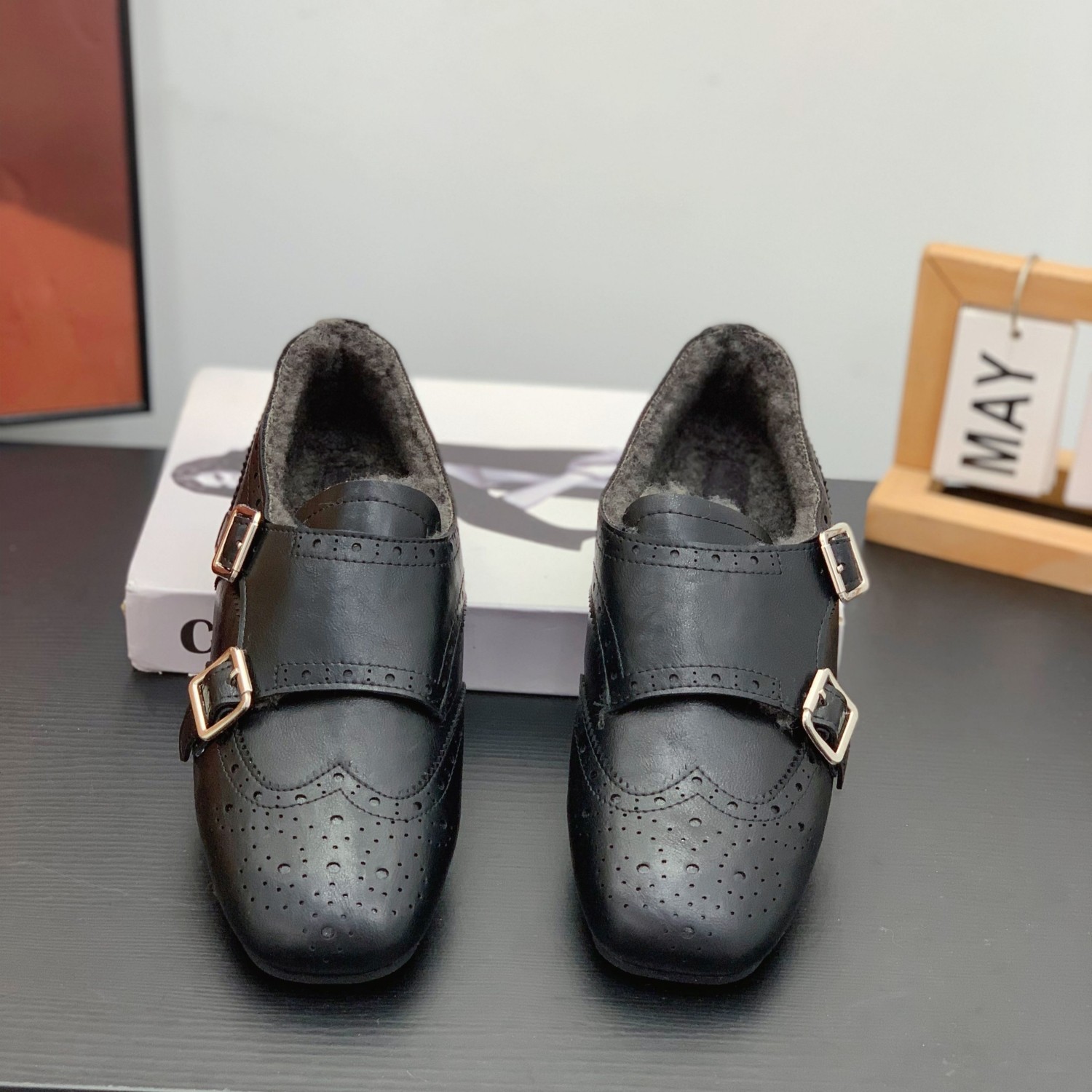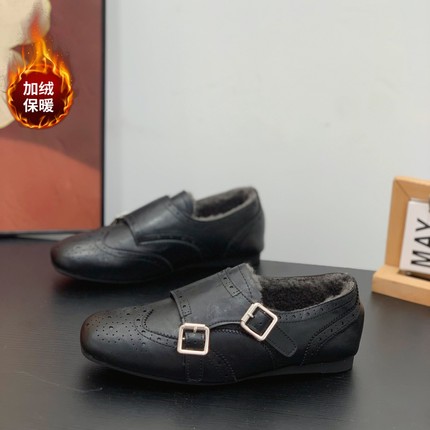 英伦风布洛克鞋加绒小皮鞋女2025冬季超火平底方头复古雕花乐福鞋