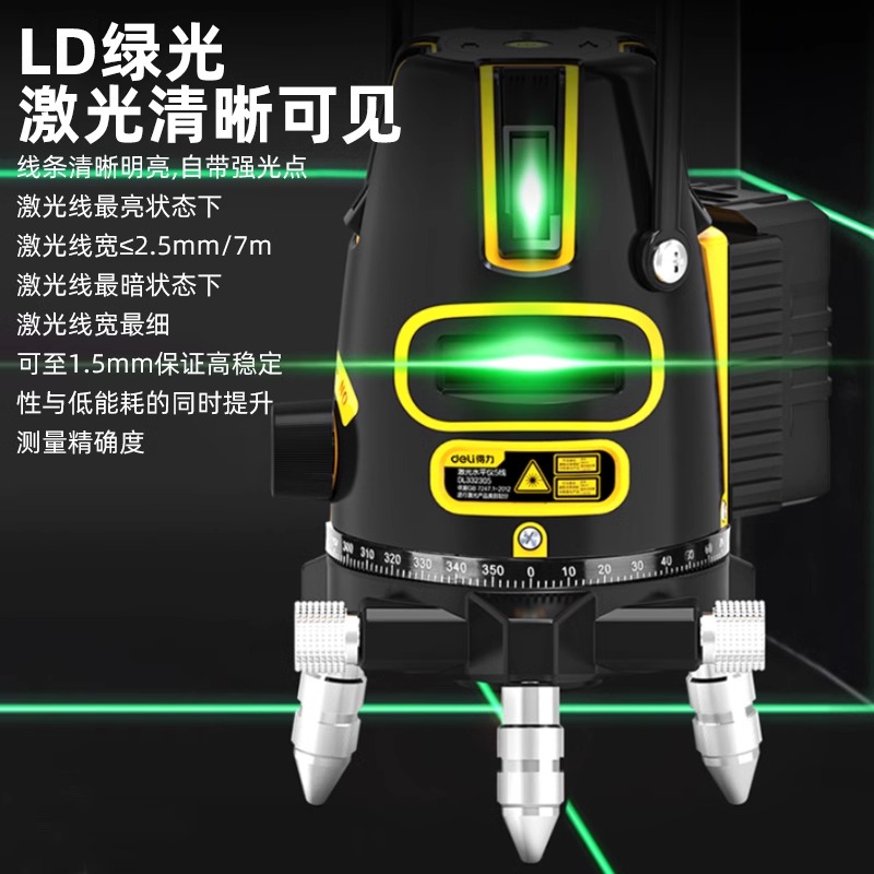 得力绿光水平仪激光2线3线5线高精度强光细线红外线自动调平水仪