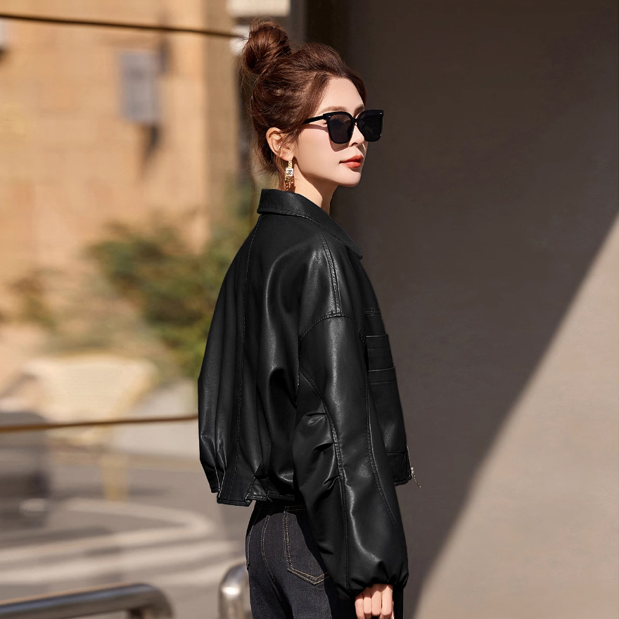 小皮衣外套女短款2025新款春秋韩版宽松休闲复古气质PU皮夹克上衣
