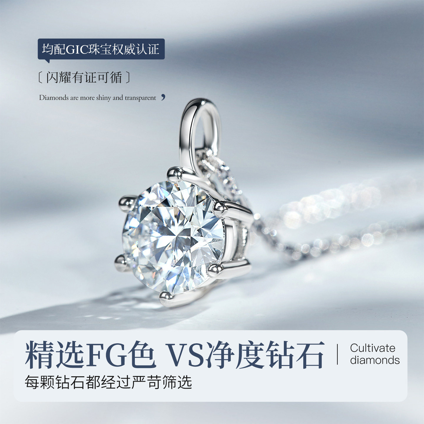 一克拉培育钻吊坠18K金人工培育钻石吊坠六爪PT950钻石项链单钻