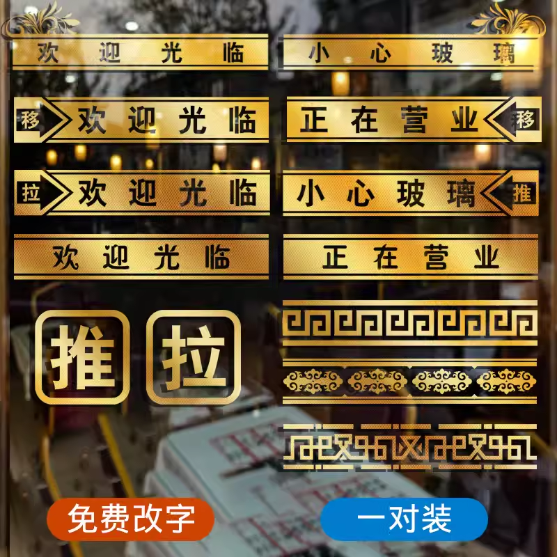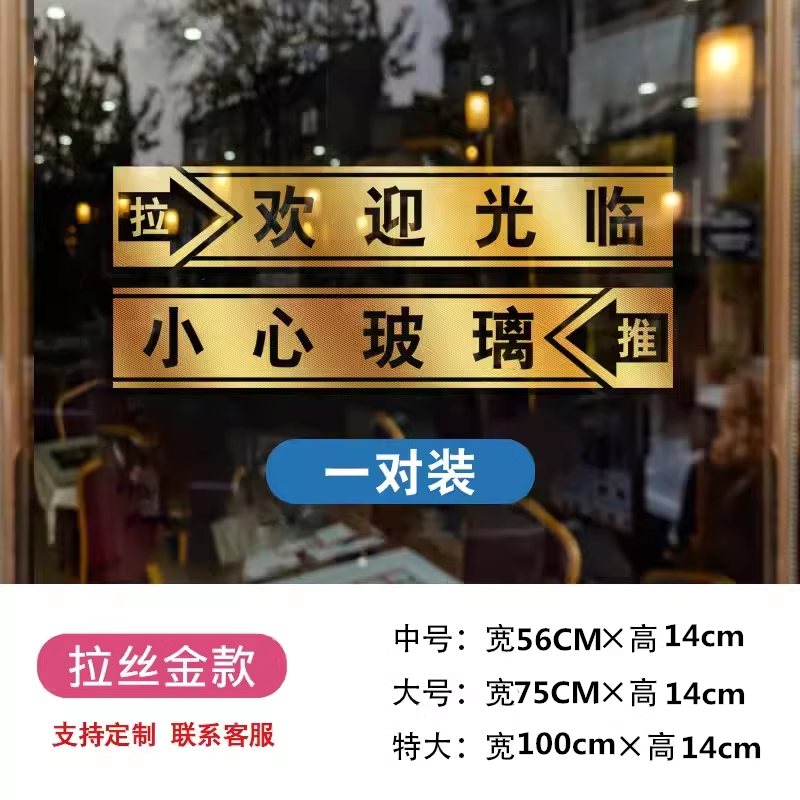 店铺玻璃门腰线贴饭馆商场推拉门欢迎光临正在营业防撞条贴纸装饰
