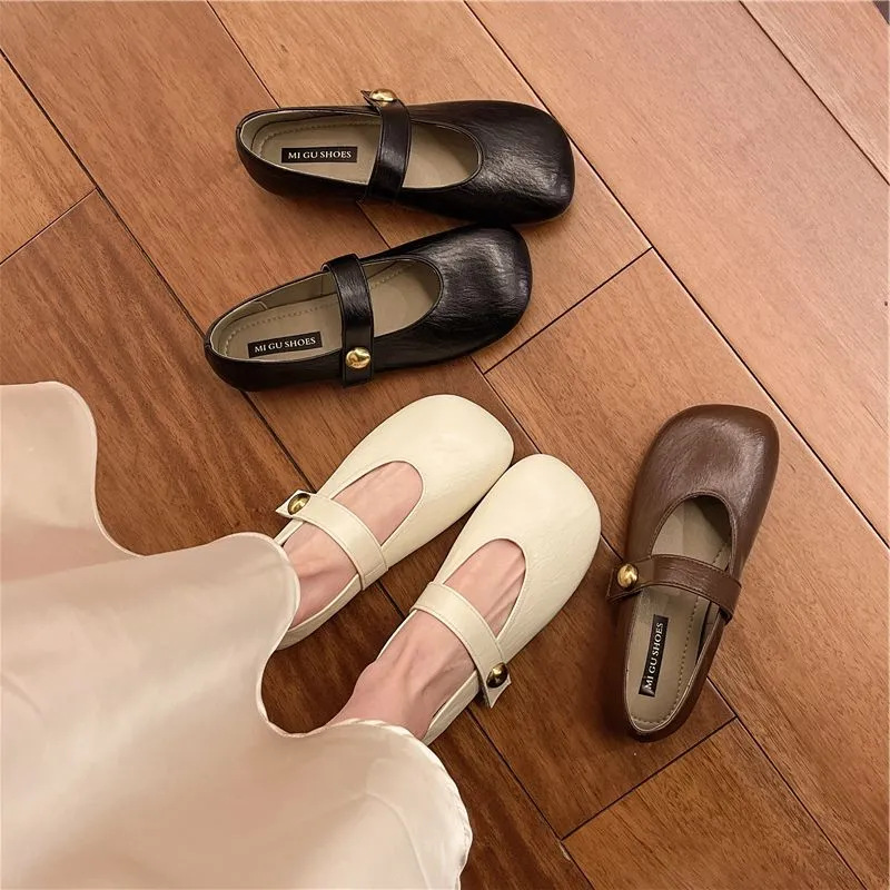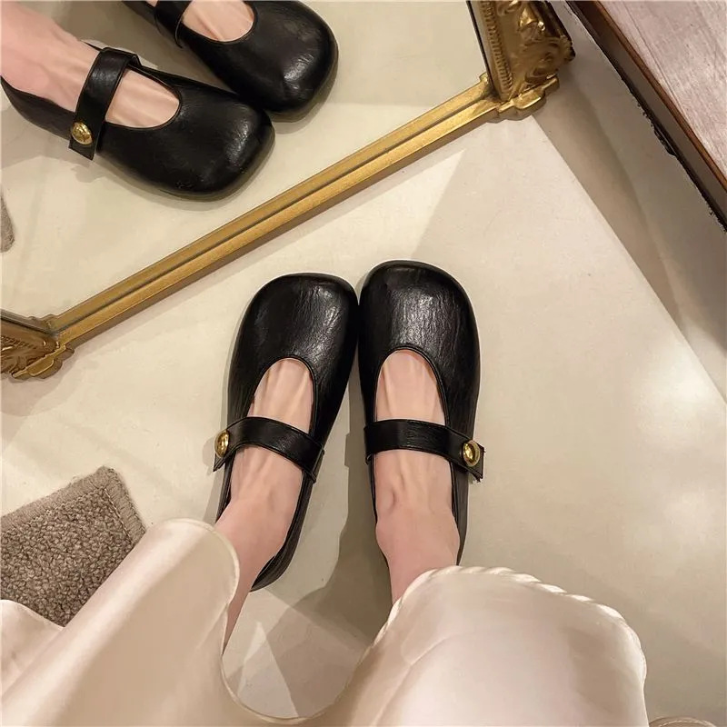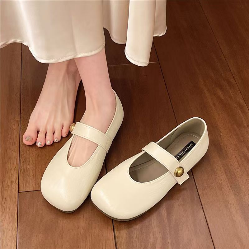 复古方头玛丽单鞋2025春夏新款鞋子魔术平底单鞋软底豆豆鞋女