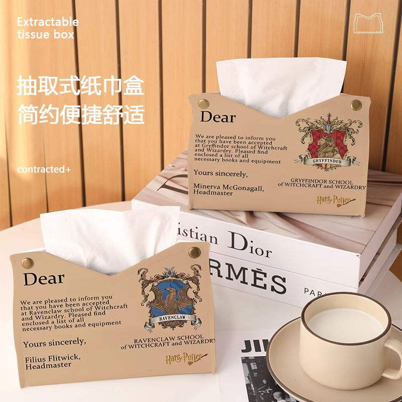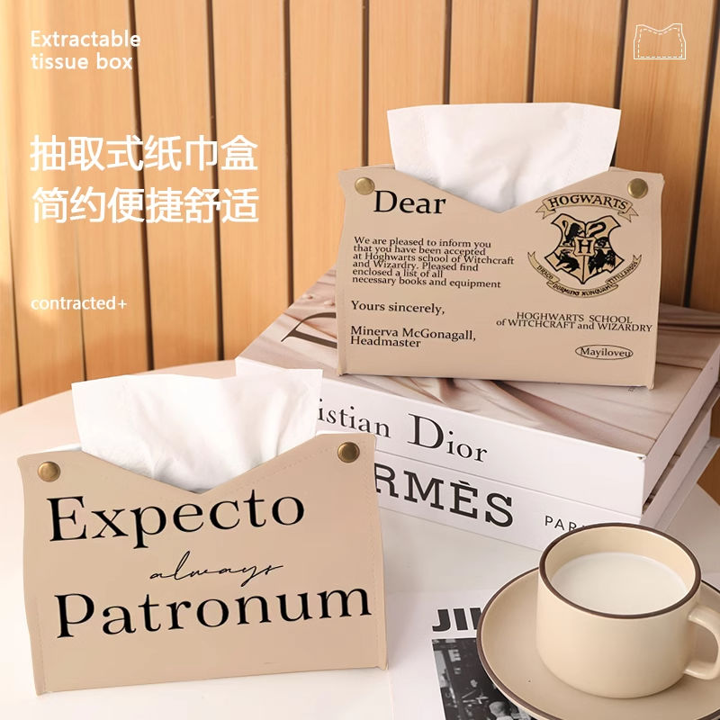 哈利波特客厅桌面纸巾盒高档轻奢车载高级感北欧皮革茶几抽纸盒