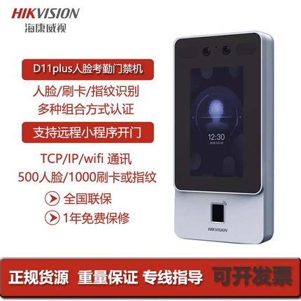海康威视D11plus人脸指纹考勤门禁机面部识别刷卡远程打卡门禁机