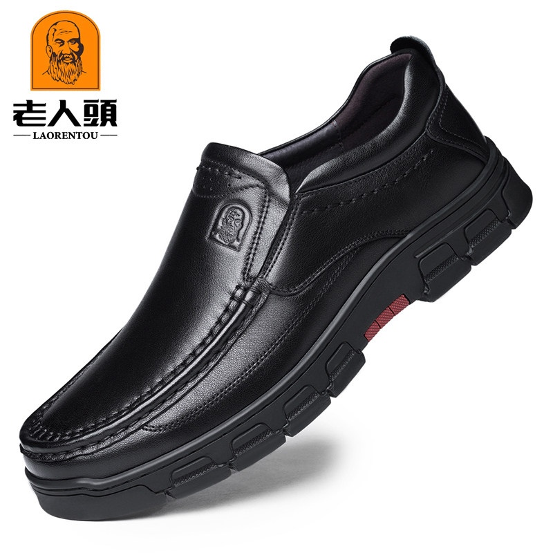 老人头男鞋秋冬季真皮透气中老年商务休闲皮鞋男士厚底圆头爸爸鞋