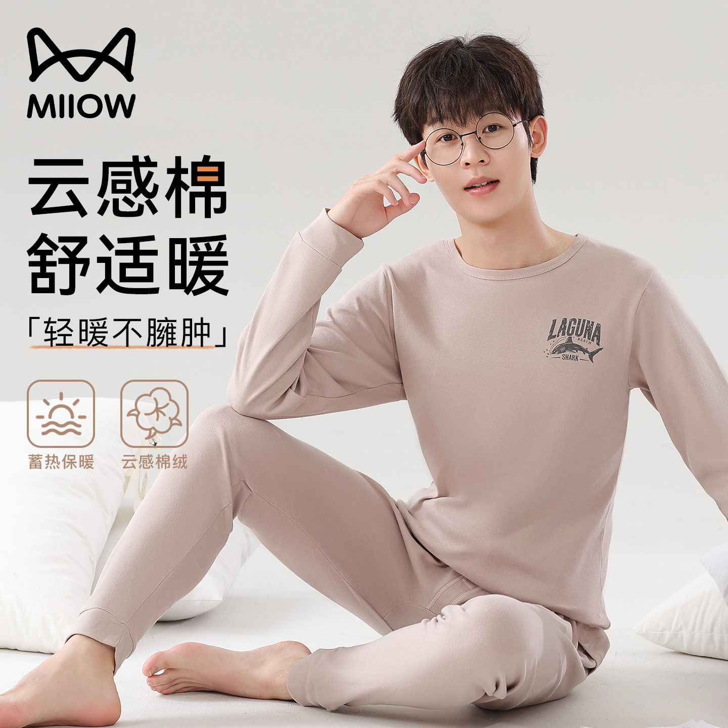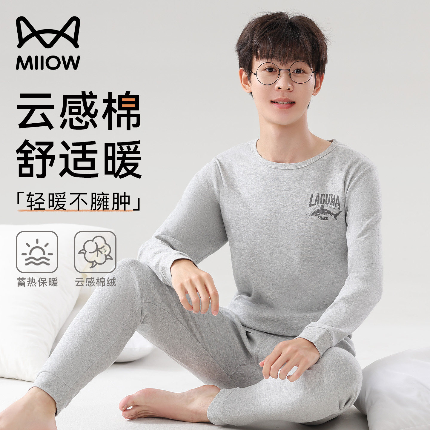 猫人青少年纯棉秋衣秋裤初高中学生内衣套装男女大童2025秋冬新款